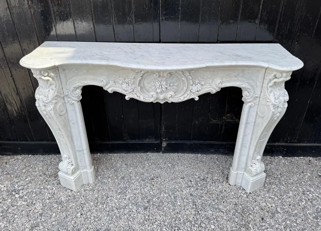 Impressive Louis Xv Style Mantel In Finely Carved Carrara Marble, Circa 1880