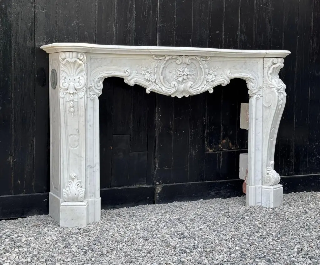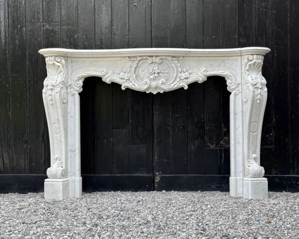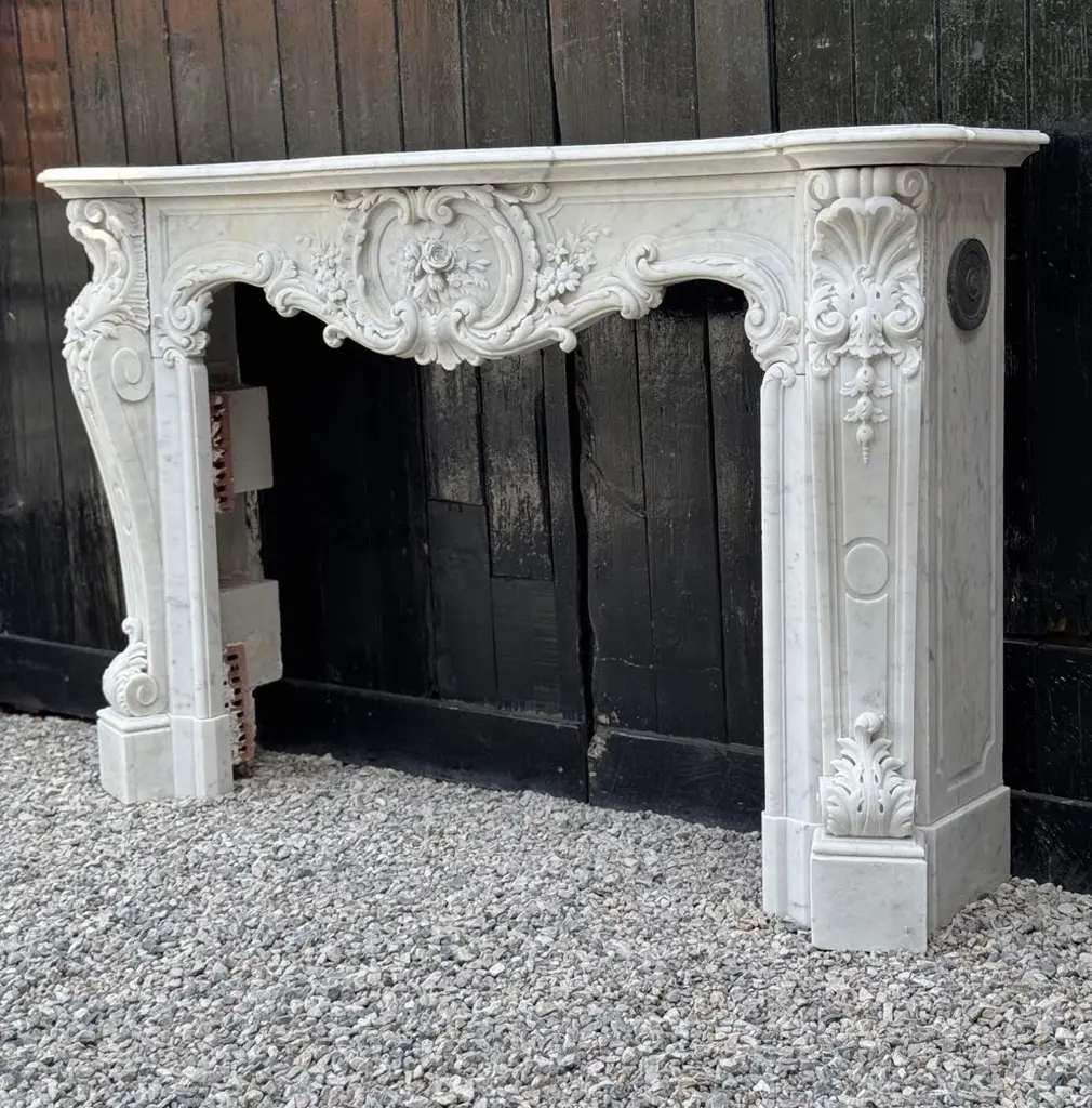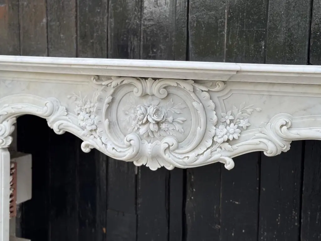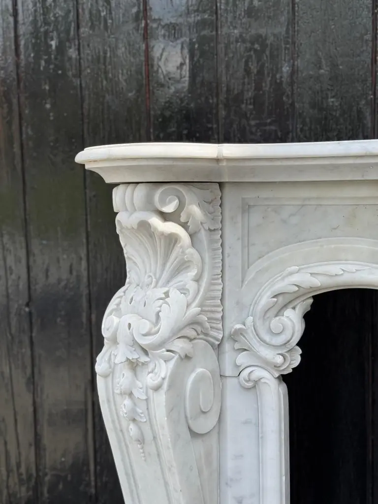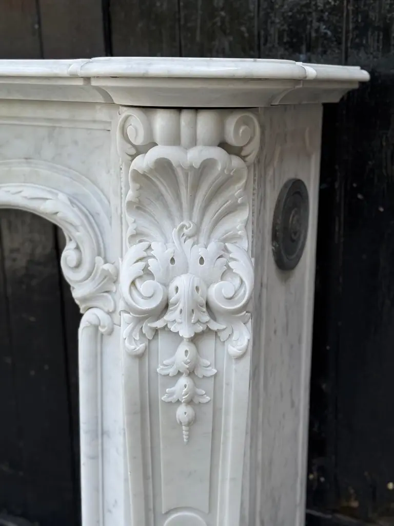 Impressive Louis XV style mantel in finely carved Carrara marble,circa 1880Fireplace dimensions: 82x122cm