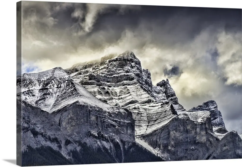 In Glacier National Park, Mountain Partially Covered With Clouds