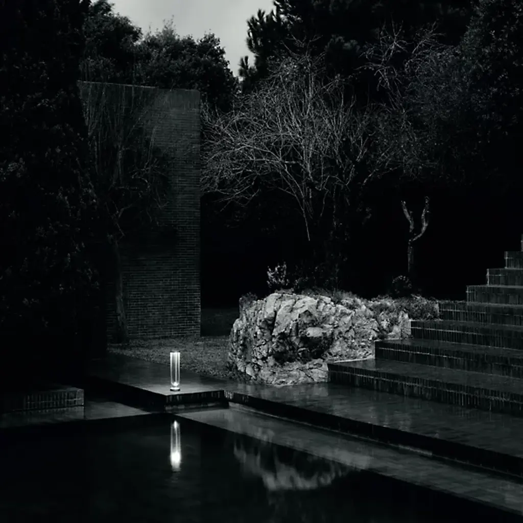 The In Vitro LED Bollard by FLOS is an airy, architectural design from Philippe Starck that draws on the classic combination of a glass globe that houses a visible lightbulb. Removing the lightbulb, this piece creates a voluminous space for light to fill, housing an integrated opalescent diffuser at the top of an open metal frame that a borosilicate glass shade is set within. Made from die-cast and extruded aluminum and treated with a chemical conversion process, the frame of this design is built to withstand the elements.