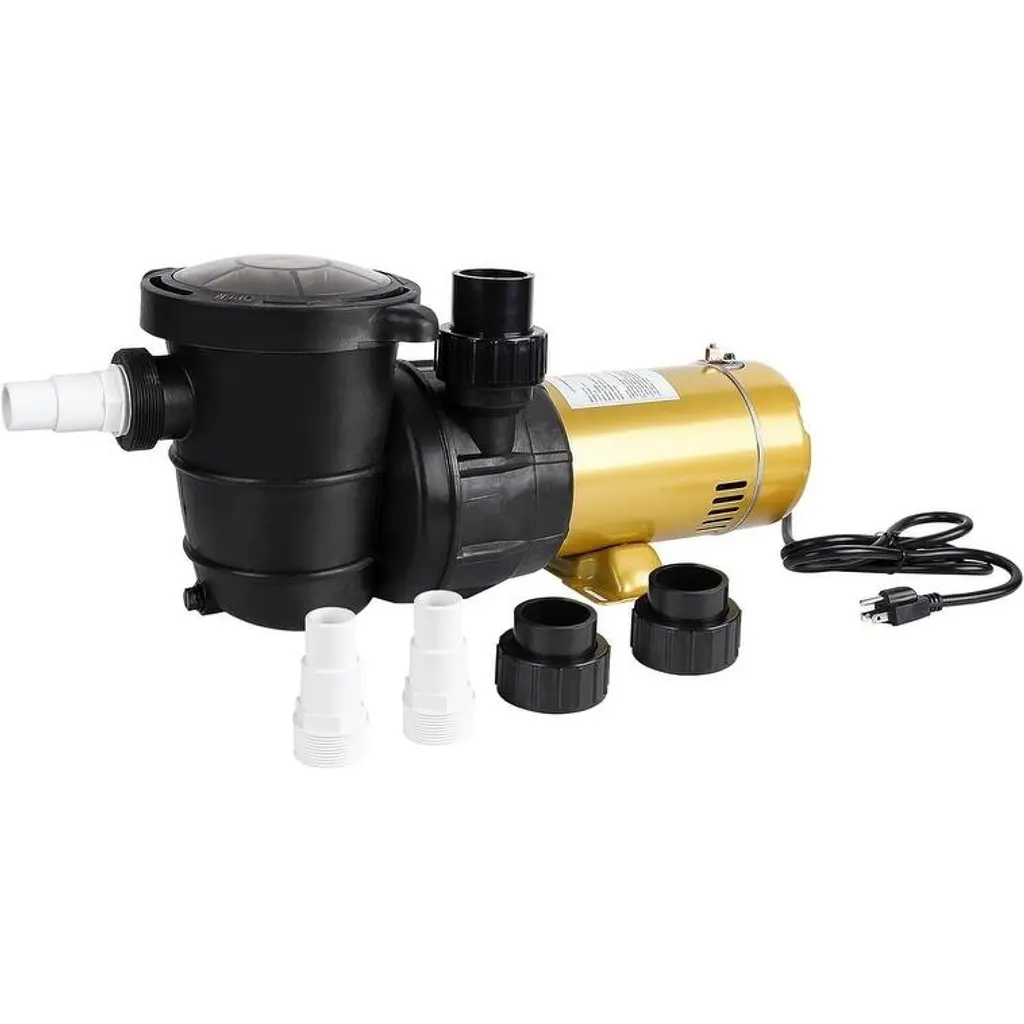 1.5 HP In/Above Ground Pool Pump with Timer ¨C 110V, 9350 GPH High-Flow Self-Priming Swimming Pool Pump with Filter Basket?About this Item:1. Programmable 24-Hour Timer for Energy SavingsFeatures a built-in 24-hour programmable timer with 9 selectable runtime options (2¨C24 hours), allowing you to customize pump operation according to your pool¡¯s needs. Reduce energy consumption and lower electricity bills by running the pump only when necessary.2. High-Performance 1.5 HP Motor with 9350 GPH FlowDelivers powerful water circulation with a maximum flow rate of 9350 gallons per hour, ensuring efficient filtration and a cleaner pool. The self-priming design enables easy startup and reliable operation for both in-ground and above-ground pools.3. Easy Installation & Clear View Filter BasketEquipped with 1.5"/2" inlet and outlet ports compatible with standard Schedule 40 PVC piping. The transparent top allows quick inspection of the filter basket, which captures debris, leaves, and grit to protect your pump and extend its lifespan.4. Quiet Operation & User-Friendly DesignOperates with minimal noise, making it ideal for residential use. The pump includes a 6-foot UL-listed power cord and requires no complex wiring¡ªsimply plug in, set the timer, and enjoy worry-free performance.5. Durable Construction & 2-Year WarrantyBuilt with corrosion-resistant materials and includes 1.5"/2" adapters for easy plumbing integration. Backed by a 2-year warranty, this pump offers long-term reliability and peace of mind.?Specifications:? Horsepower: 1.5 HP? Voltage: 110V? Max Flow Rate: 9350 GPH? Inlet/Outlet: 1.5¡å / 2¡å (Schedule 40 Compatible)? Timer: 24-Hour Programmable (2¨C24 Hours Runtime)? Cord Length: 6 FT (UL Listed)? Weight: 26.4 lbs? Includes: Filter Basket, Adapters? Warranty: 2 Years?Ideal For:? In-Ground and Above-Ground Pools? Residential and Commercial Pool Systems? Water Circulation and Filtration? Debris and Leaf Removal