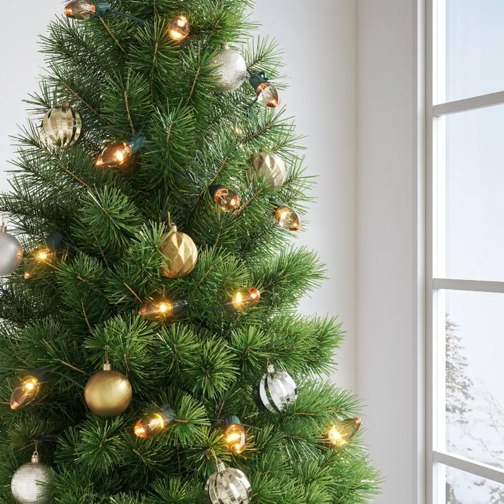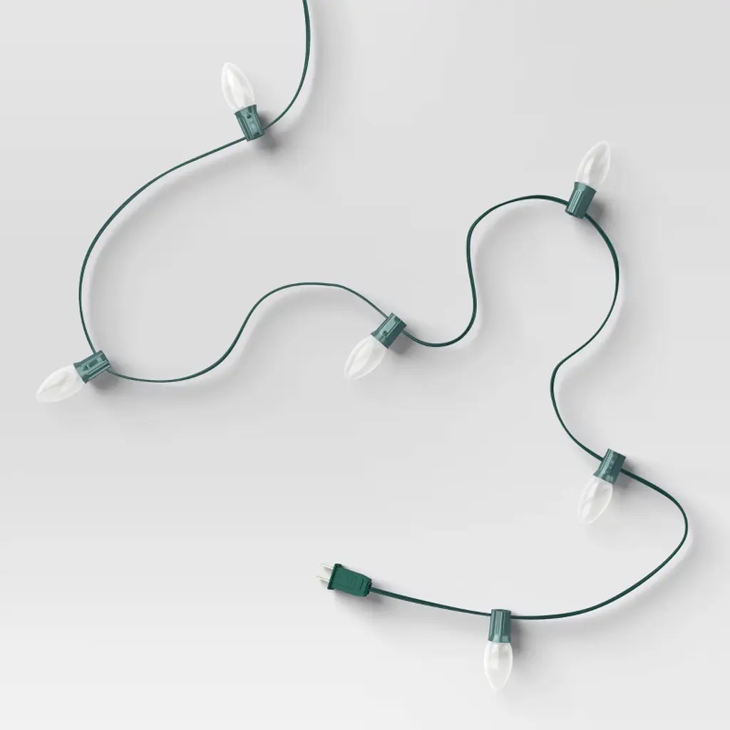 Let these Incandescent Christmas Filament String Lights Clear with Green Wire from Wondershop™ fill your home with holiday cheer. Featuring a green plastic wire strung with 20 incandescent filament bulbs, these clear string lights add a magical touch to indoor and outdoor spaces. Plus, these electrically powered lights connect end to end — up to three sets — for effortless decorating. Spiral them around your holiday tree, weave them through bookshelves or countertops, or string them along your patio, deck or garden.Welcome to the Wondershop™.