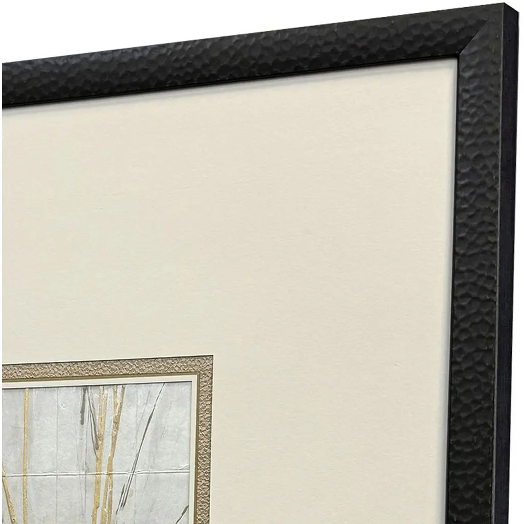 Mixed media giclee is embellished with hand painted accents and gold leaf. Framed in a modern rubbed matted espresso wood with honeycomb embossing.