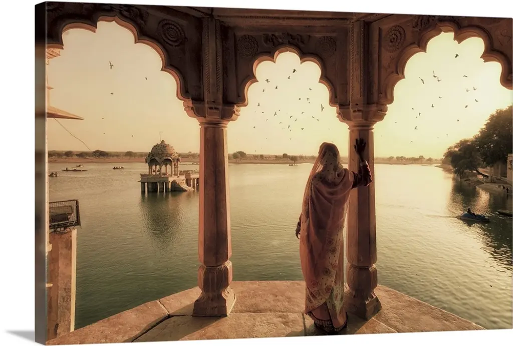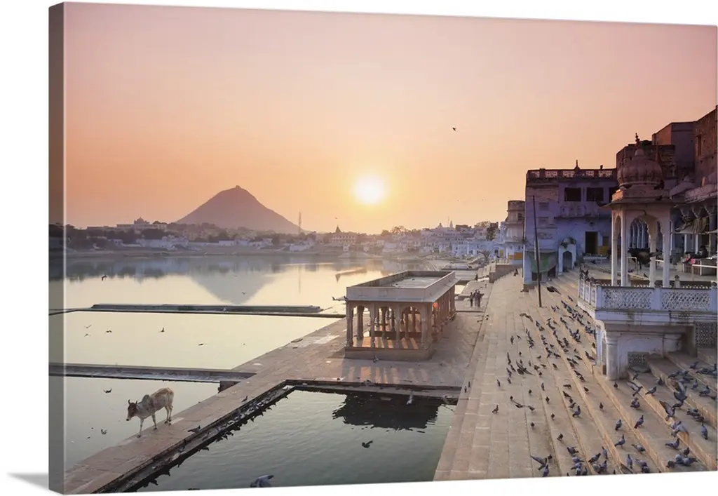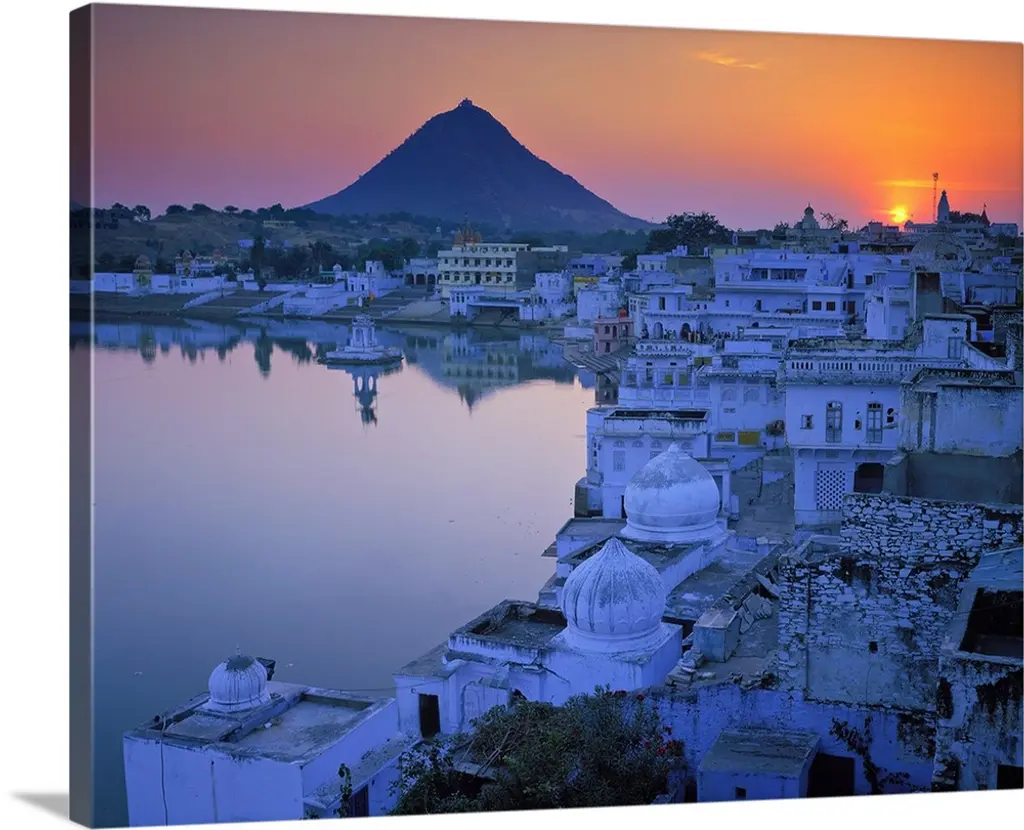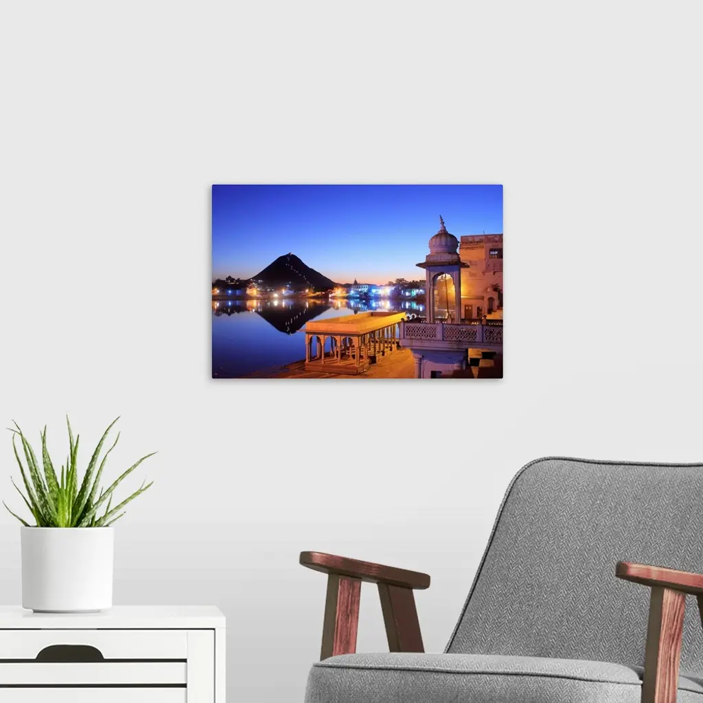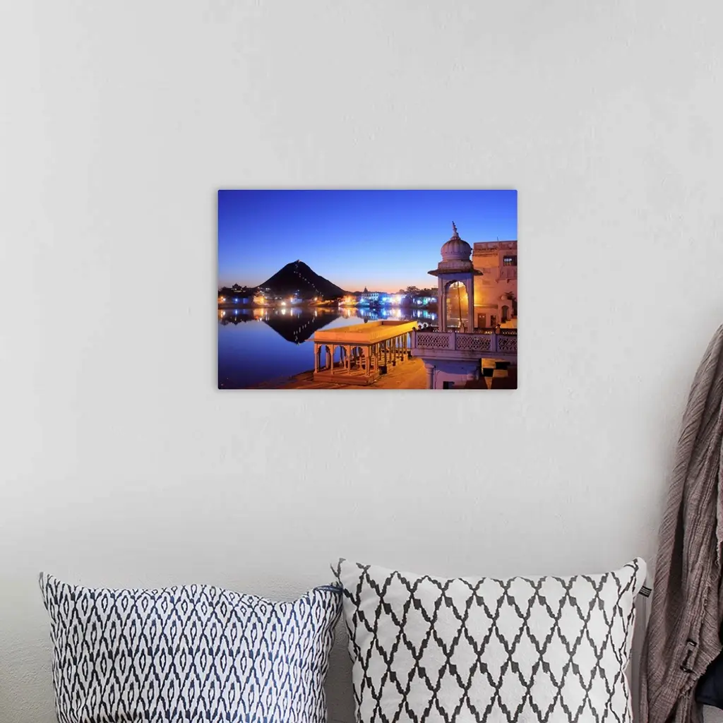 India, Rajasthan, Pushkar lake, Pushkar, Lake and the Ghats at twilight wall art for home and office decor. Discover canvas art prints, photos, mural, big canvas art and framed wall art in GreatBigCanvas.com's varied collections.