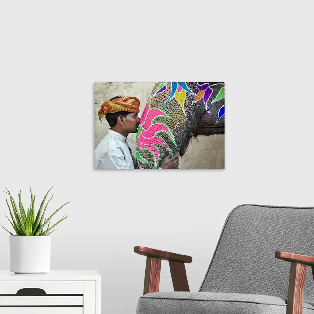 Indian Elephant with trainer, Jaipur, India wall art for home and office decor. Discover canvas art prints, photos, mural, big canvas art and framed wall art in GreatBigCanvas.com's varied collections.