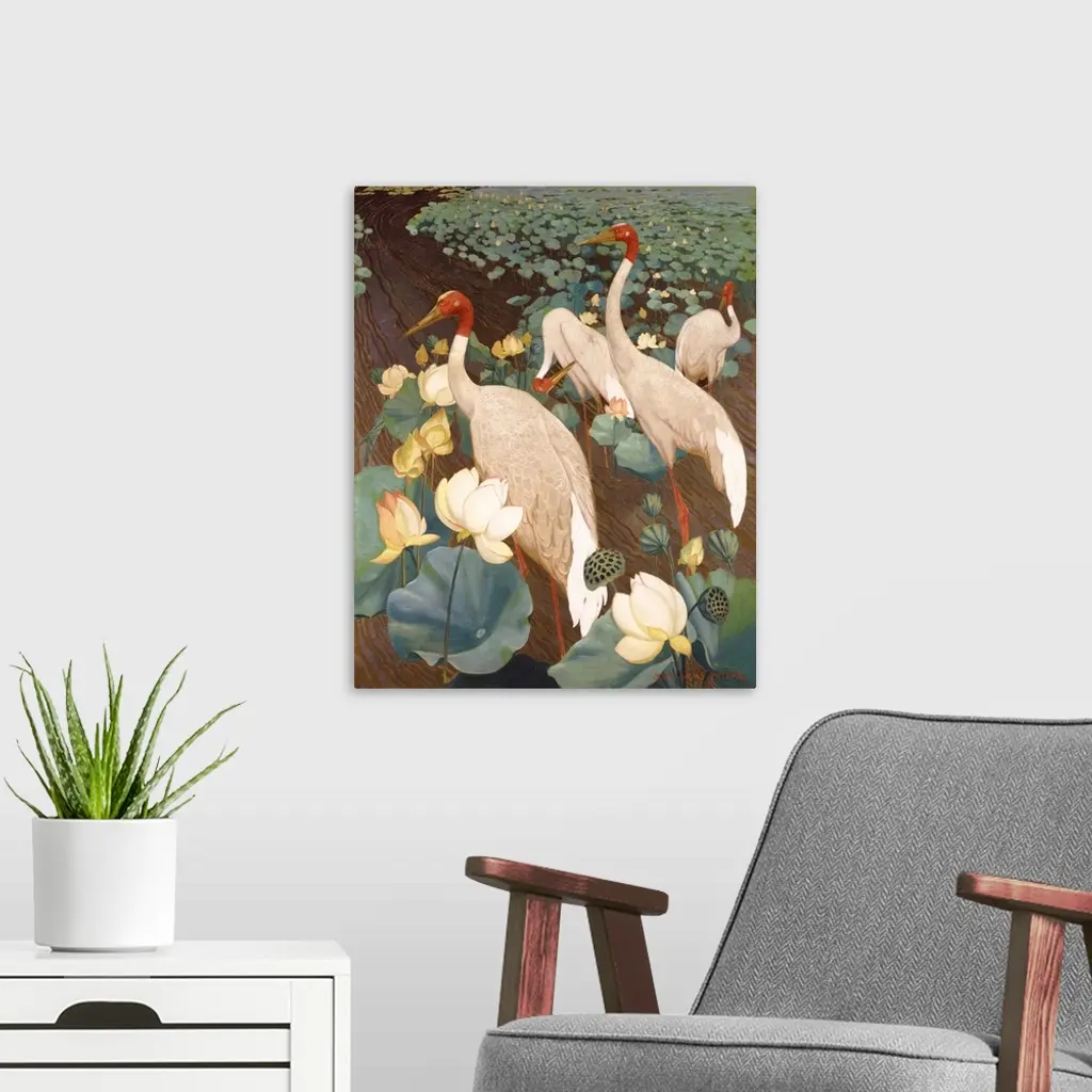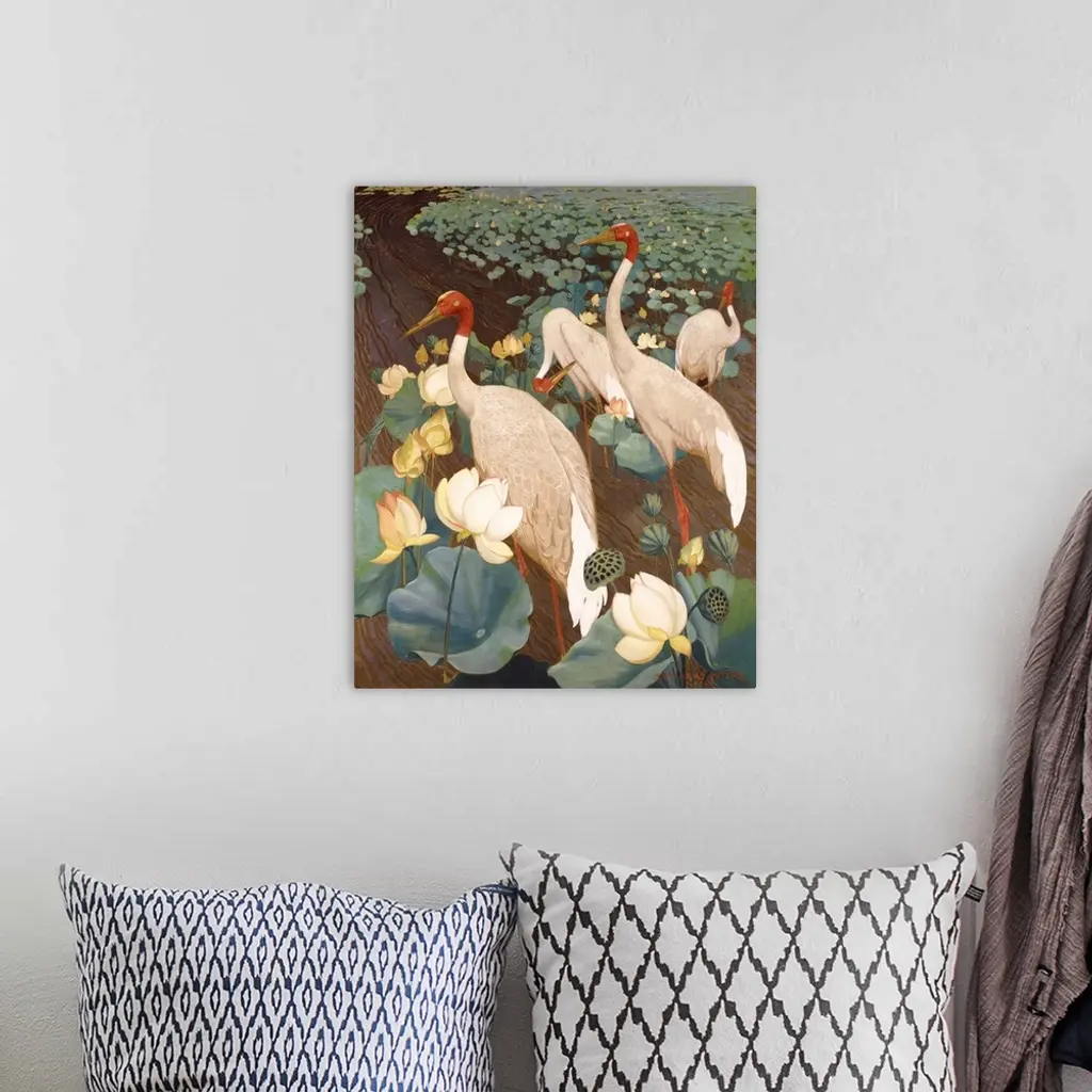 Indian Sarus Cranes on Gold Leaf wall art for home and office decor. Discover canvas art prints, photos, mural, big canvas art and framed wall art in GreatBigCanvas.com's varied collections.