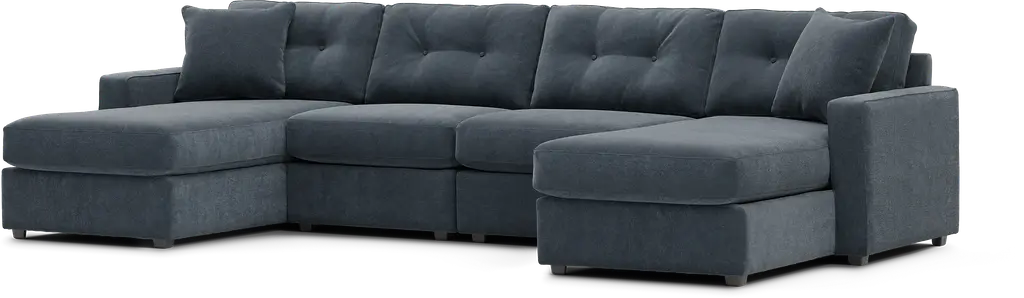 Discover the limitless possibilities of the Drew & Jonathan ModularOne, thoughtfully designed with comfort and flexibility in mind. This customizable seating solution features individual pieces that can be configured to any shape your room needs - the seating arrangement you want is always right at your fingertips. Each individual piece is upholstered on all sides in our signature fabric, New Horizon. This soft, indigo blue chenille includes Repreve yarn, made with recycled plastic bottles. The seating area has welted track arms, top-stitched seat cushions and button-tufted back cushions for an elegant silhouette. Seats with power reclining functionality allow for easy adjustment of the footrest, providing the ultimate in personalized comfort. Includes LAF chaise, 2 armless power recliners, and RAF chaise. Upholstery: 100% Polyester.