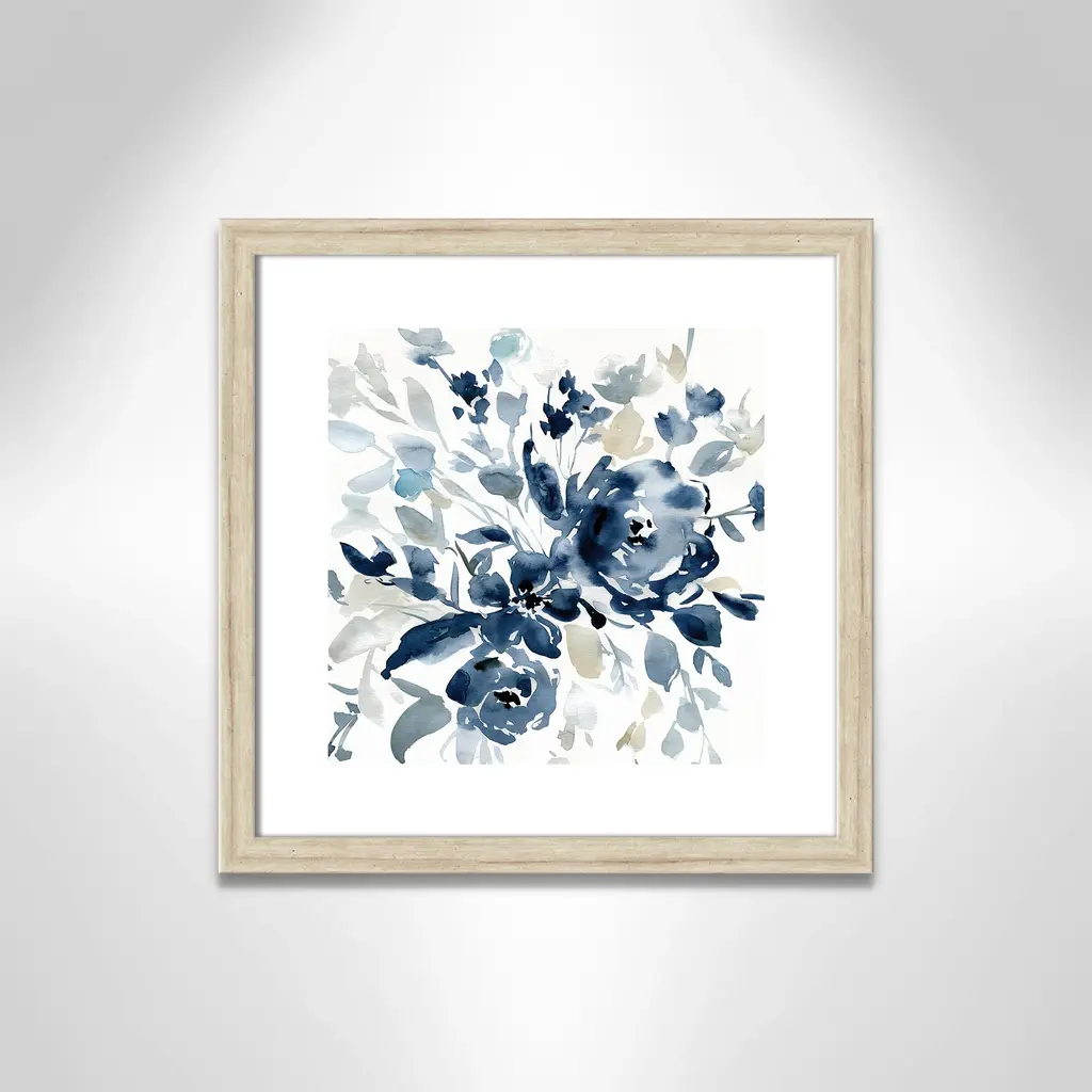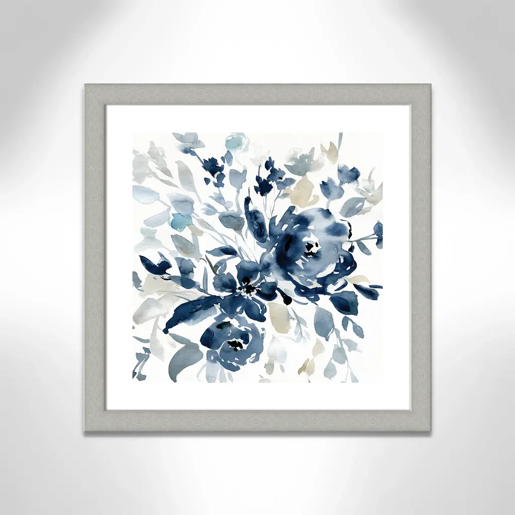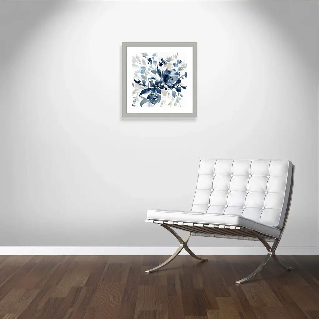 Transform your walls with the latest color trends in home décor! This dainty watercolor floral image combines rich shades of indigo and neutral tones for a classic, elegant appearance. Finished in a modern frame made of PS materials, this is the perfect addition to your walls. Archival fine art giclée print on acid-free and lignin-free 100% cotton rag paper; image includes a bright white self-matting border Printed with gallery-quality inks using the finest giclée print technology for unsurpassed color gamut and clarity Lightweight and finished under shatter-resistant acrylic; hanging hardware attached for easy and secure installation Handcrafted in the USA and ships with a Certificate of Authenticity Lightweight and finished under shatter-resistant acrylic