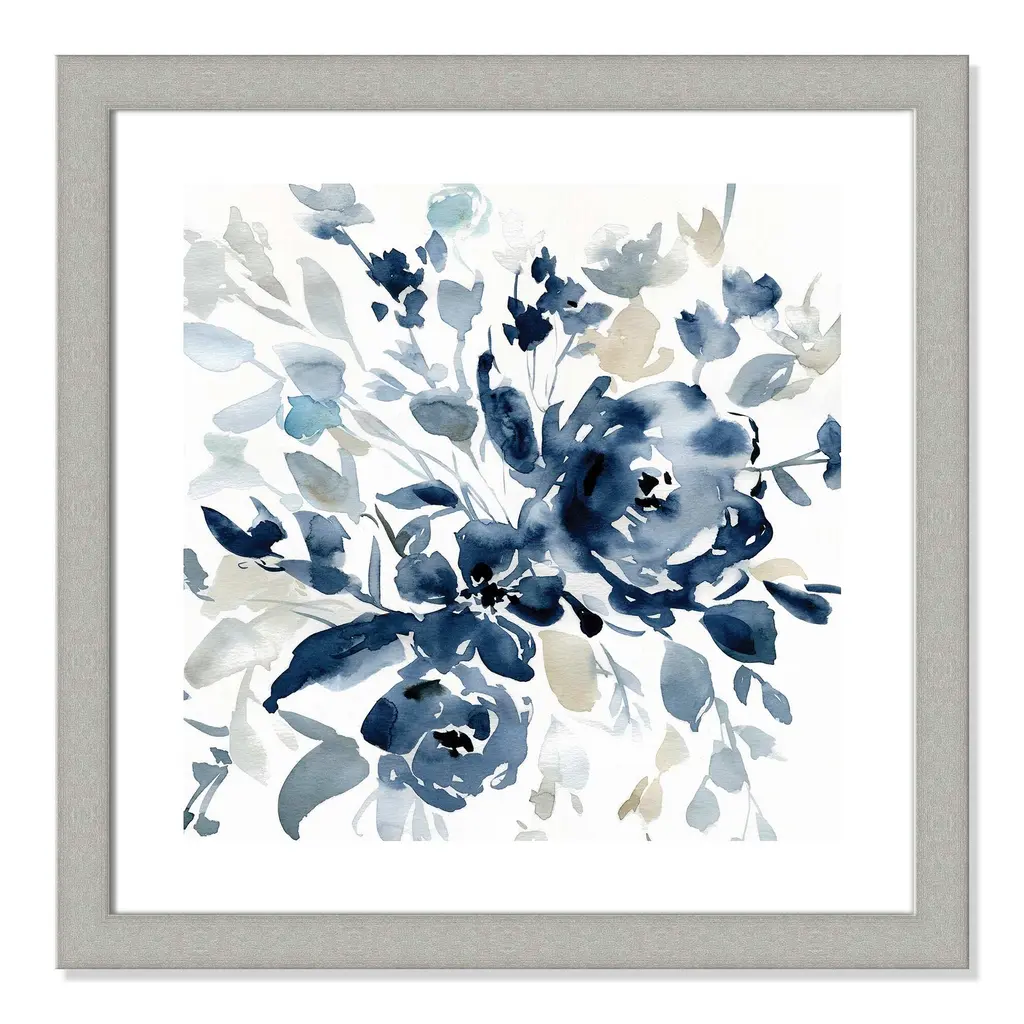 Transform your walls with the latest color trends in home décor! This dainty watercolor floral image combines rich shades of indigo and neutral tones for a classic, elegant appearance. Finished in a modern frame made of PS materials, this is the perfect addition to your walls. Archival fine art giclée print on acid-free and lignin-free 100% cotton rag paper; image includes a bright white self-matting border Printed with gallery-quality inks using the finest giclée print technology for unsurpassed color gamut and clarity Lightweight and finished under shatter-resistant acrylic; hanging hardware attached for easy and secure installation Handcrafted in the USA and ships with a Certificate of Authenticity Lightweight and finished under shatter-resistant acrylic