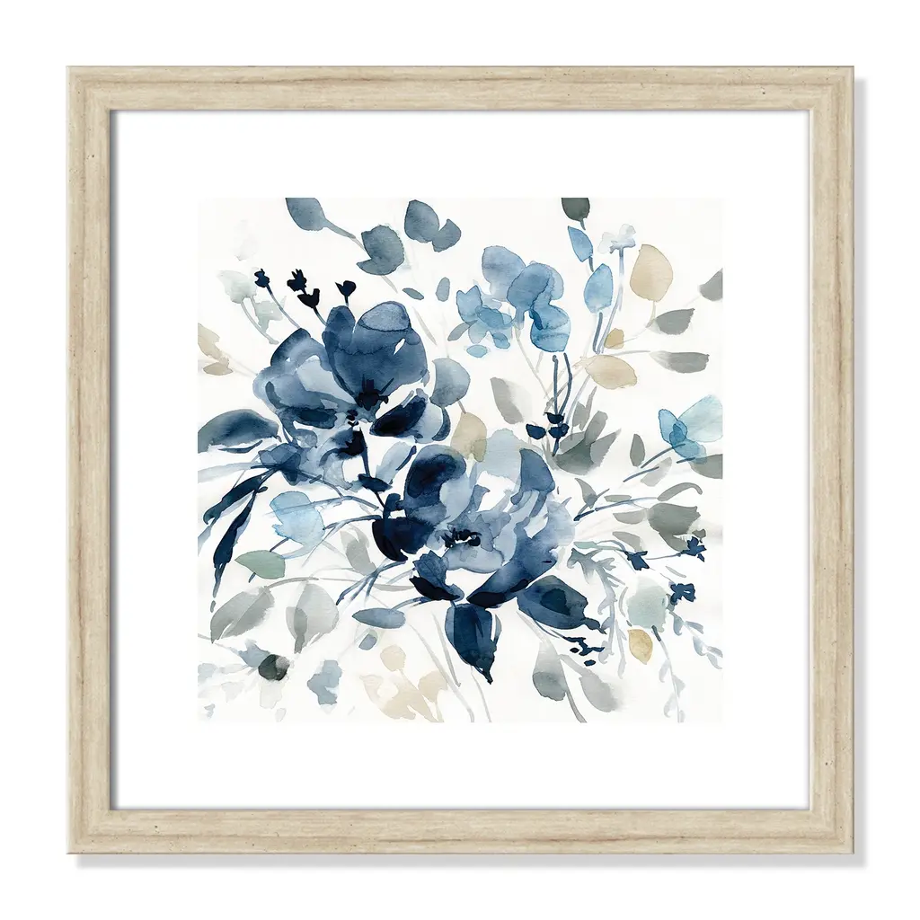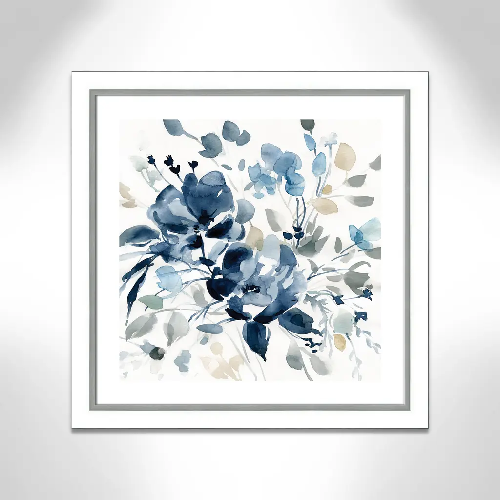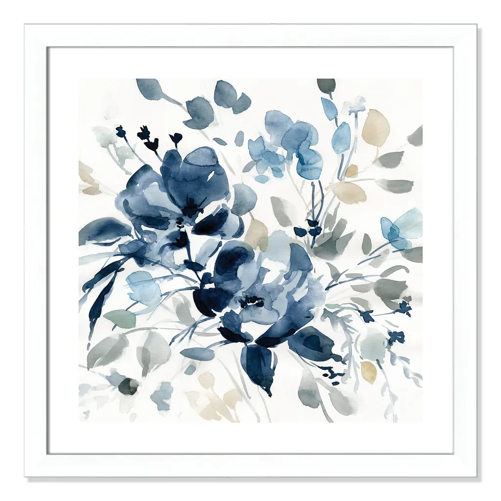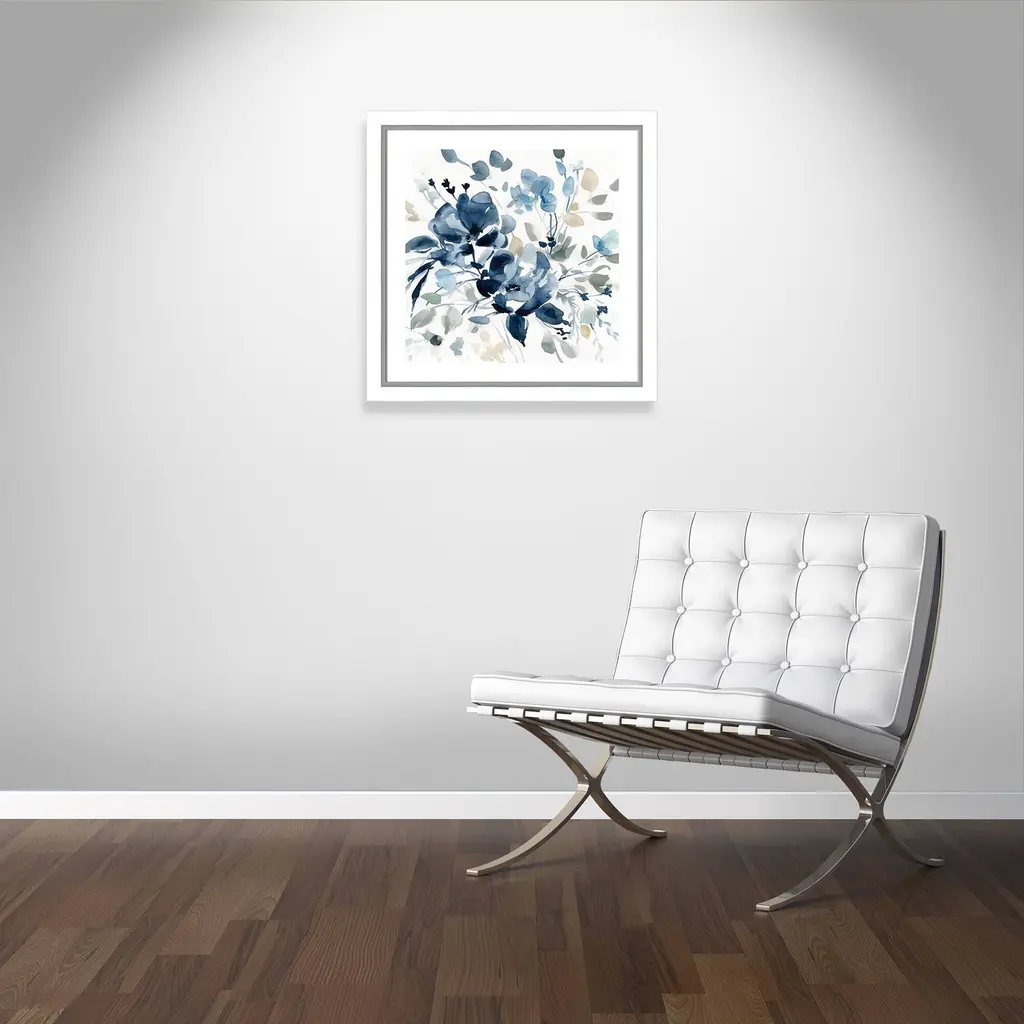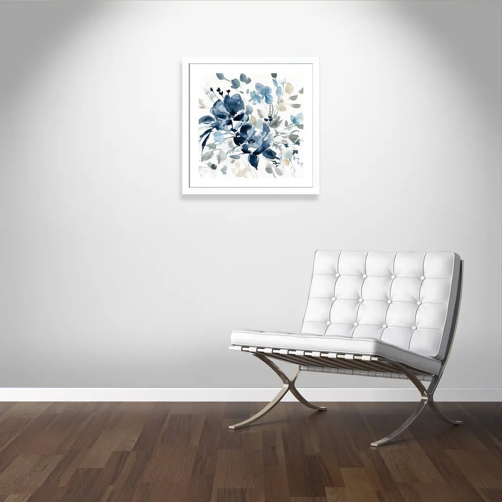 Transform your walls with the latest color trends in home décor! This dainty watercolor floral image combines rich shades of indigo and neutral tones for a classic, elegant appearance. Finished in a modern frame made of PS materials, this is the perfect addition to your walls. Archival fine art giclée print on acid-free and lignin-free 100% cotton rag paper; image includes a bright white self-matting border Printed with gallery-quality inks using the finest giclée print technology for unsurpassed color gamut and clarity Lightweight and finished under shatter-resistant acrylic; hanging hardware attached for easy and secure installation Handcrafted in the USA and ships with a Certificate of Authenticity Lightweight and finished under shatter-resistant acrylic