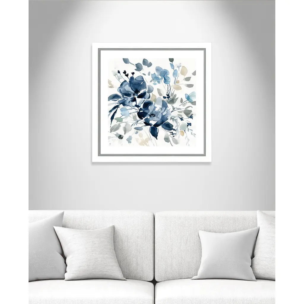 Transform your walls with the latest color trends in home décor! This dainty watercolor floral image combines rich shades of indigo and neutral tones for a classic, elegant appearance. Finished in a modern frame made of PS materials, this is the perfect addition to your walls. Archival fine art giclée print on acid-free and lignin-free 100% cotton rag paper; image includes a bright white self-matting border Printed with gallery-quality inks using the finest giclée print technology for unsurpassed color gamut and clarity Lightweight and finished under shatter-resistant acrylic; hanging hardware attached for easy and secure installation Handcrafted in the USA and ships with a Certificate of Authenticity Lightweight and finished under shatter-resistant acrylic