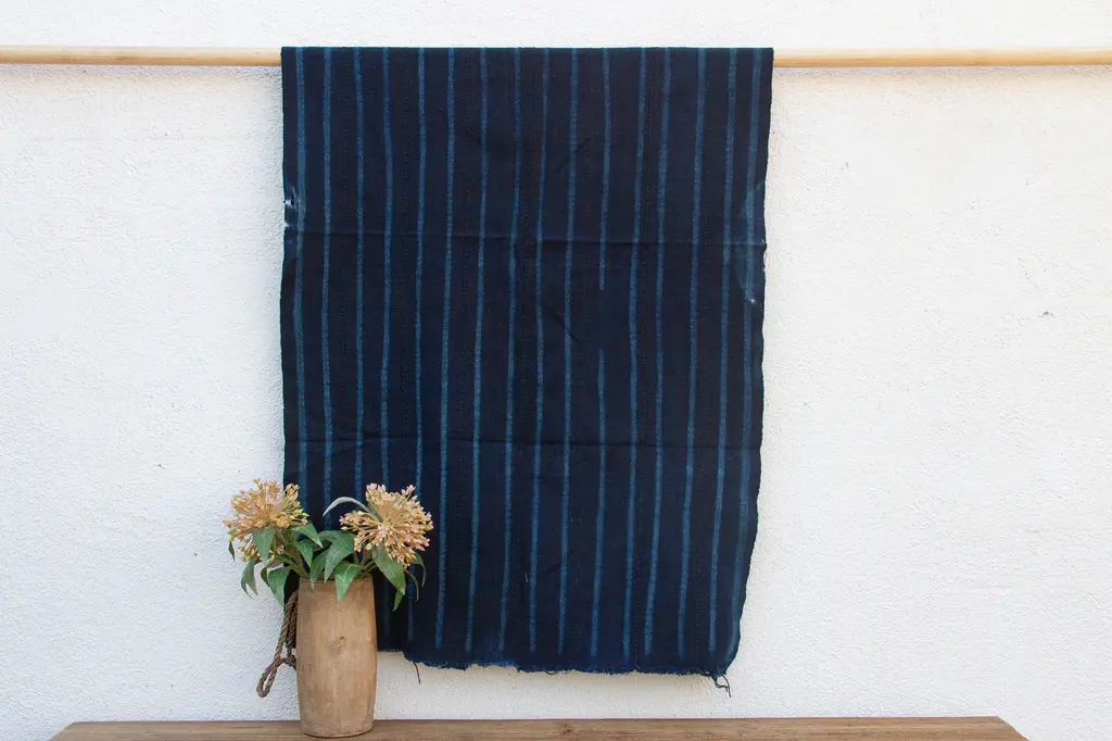 This exceptional Malian mudcloth, or bogolanfini, offer a rare glimpse into West African textile traditions. Handwoven and dyed using a labor-intensive process involving fermented mud and indigo, each piece embodies the rich cultural heritage of Mali. The intricate designs hold deep symbolic meaning and were historically worn by hunters to cover from the sun and during ceremonial rituals.