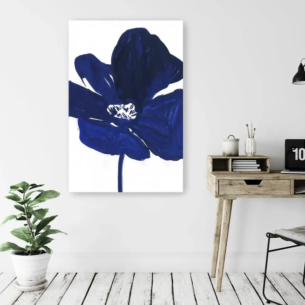A deep blue flower makes this whole print. The simple yet elegant design is the perfect piece to tie your whole décor together. Our Gallery Wrap Canvas Prints are proudly assembled with high quality materials in California, USA. Each piece is printed on a thick, archival grade canvas using Giclee technology. It is then hand-stretched by our experienced artisans over solid pine bars, which will not warp over time. The final product is a piece personally crafted for you to confidently display on your wall. Care and Assembly: Ensure that the location of your piece has little to no exposure to heat, sunlight, and moisture. Wipe clean, only if needed. Each piece includes a sawtooth hanger to hang on your wall vertically.