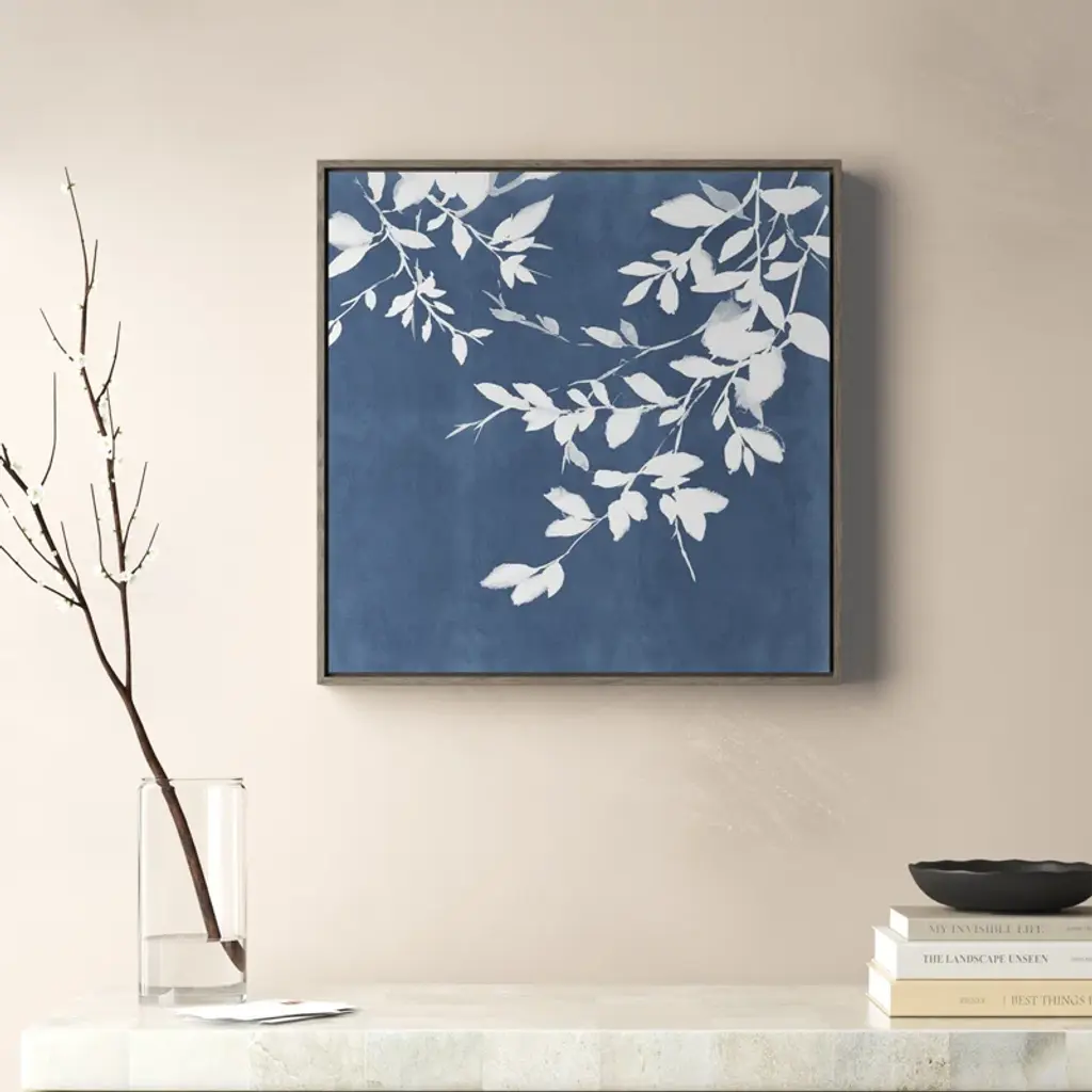 Add a touch of abstract elegance to your home with this Indigo Sky I framed canvas art by Isabelle Z. Featuring a watercolor painting of wildflowers and plants, this square piece brings a sense of tranquility to any room. The gray floater frame, made from lightweight plastic, beautifully complements the artwork while adding a refined touch. Ideal for both residential and professional spaces, this captivating piece of art is machine-made for precision and consistency. Just remember, it's not plug-in, so find the perfect spot to showcase its beauty.