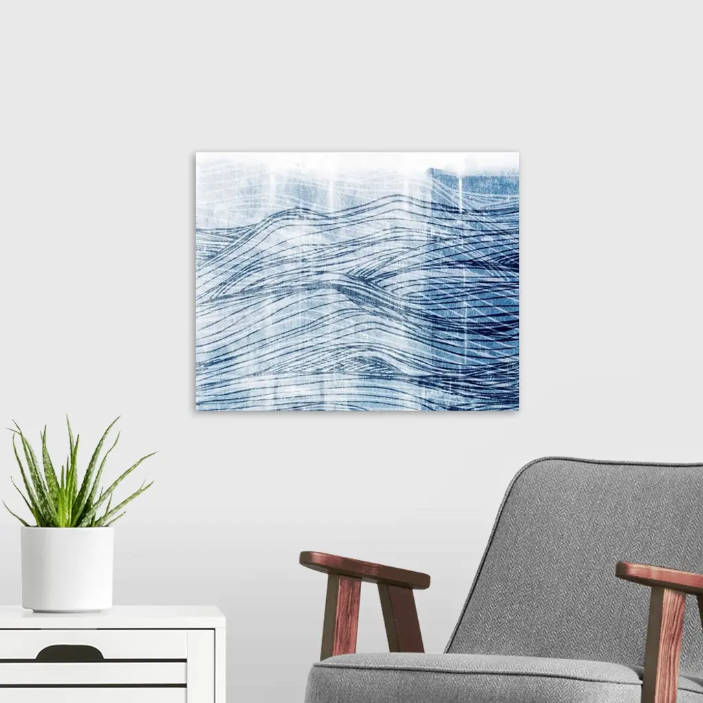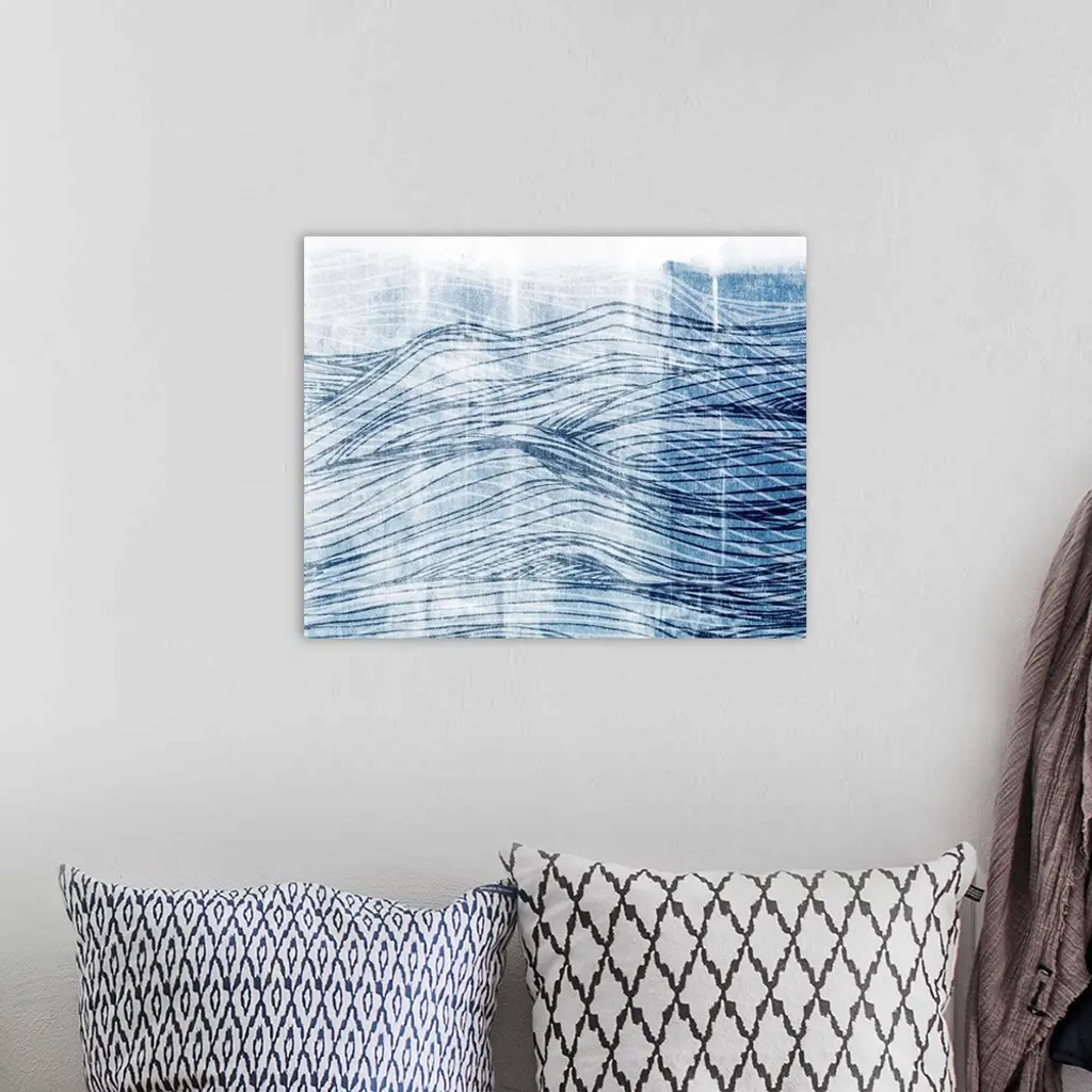 Indigo Waves I wall art for home and office decor. Discover canvas art prints, photos, mural, big canvas art and framed wall art in GreatBigCanvas.com's varied collections.