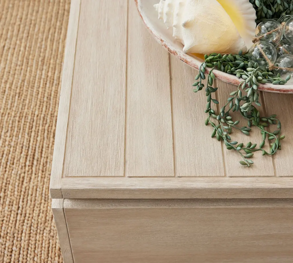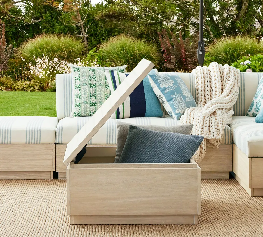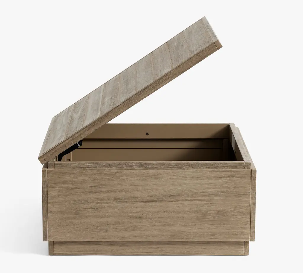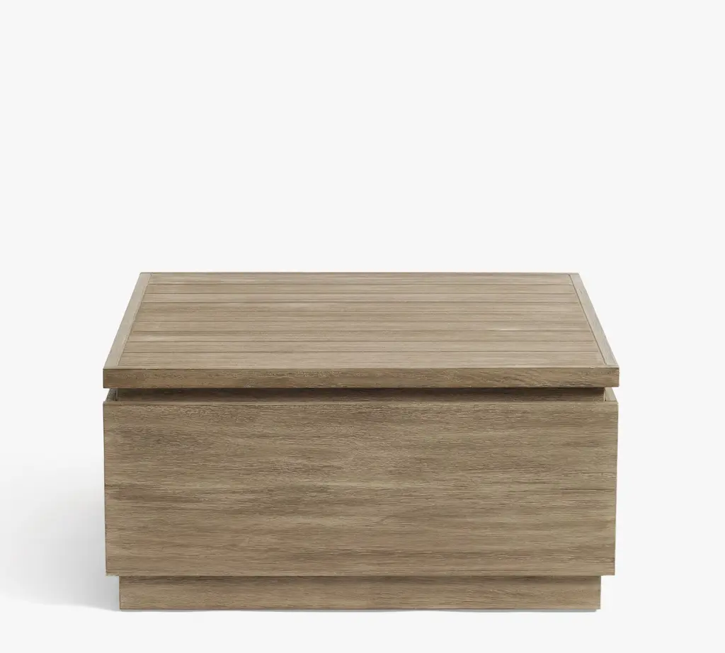 Clean lines, a substantial profile, and summery surfaces help Indio fit in anywhere. Live and play outdoors without a care with these versatile, modular, easy-maintenance platform pieces. Crafted in planet-friendly wood with a sleek modern symmetry, the table’s hinged tabletop lets you store anything from towels to toys inside and - best of all - has an easygoing, sun-drenched look.
