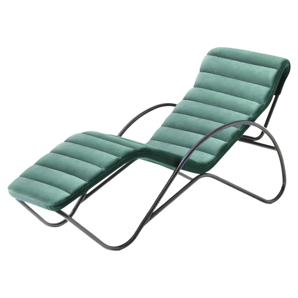 Charlotte Perriand designed Chaise longue Indochine in November of 1943, during her term as Director of Crafts in Vietnam. Confined to bed toward the end of her pregnancy, she designed a chaise longue with armrests that allowed her to continue to read, write and design. The first specimen was in rattan, due to the impossibility of finding steel because of the Pacific War. In collaboration with Pernette Perriand-Barsac, Cassina recoups the original intuition of the pioneer of modernity and produces Chaise longue Indochine in painted tubular metal. In a crescendo of lines, three curved segments joined by fasteners intersect, designing the aerodynamic silhouette of this piece of furniture where the armrests are the natural continuation of the base. The chaise longue’s cradle is equipped with elastic webbing that provides support to the seat, optimising its cosiness. A topper with removable upholstery envelops the structure. Its soft padding is made of recycled PET fibre, punctuated by a quilted motif, stitched from edge to edge.