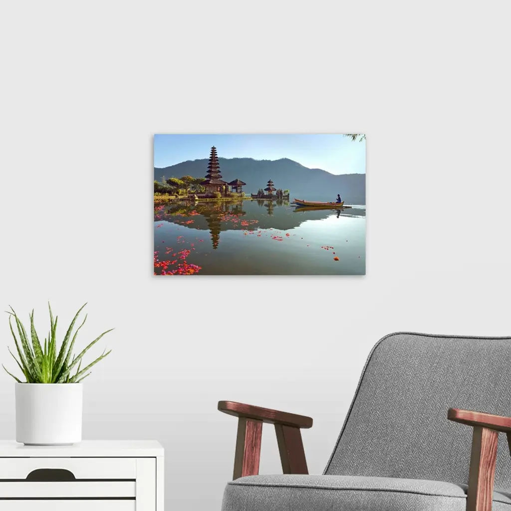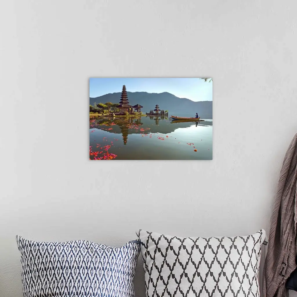 Indonesia, Bali Island, Tabanan, Lake Bratan, A traditional rowing boat wall art for home and office decor. Discover canvas art prints, photos, mural, big canvas art and framed wall art in GreatBigCanvas.com's varied collections.
