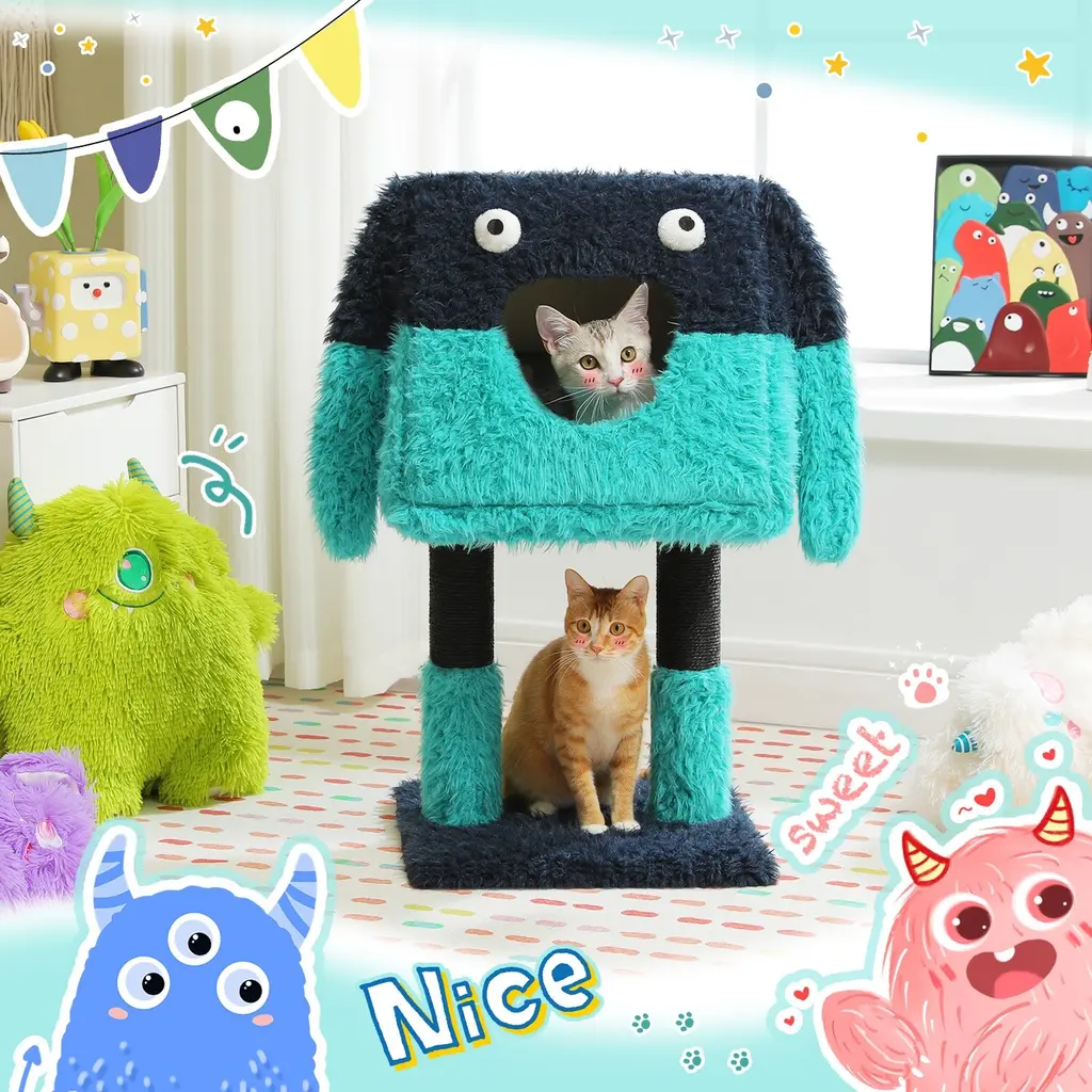 Indoor Cat Tower With Cat Condo And Sisal Scratching Post - Blue - S
