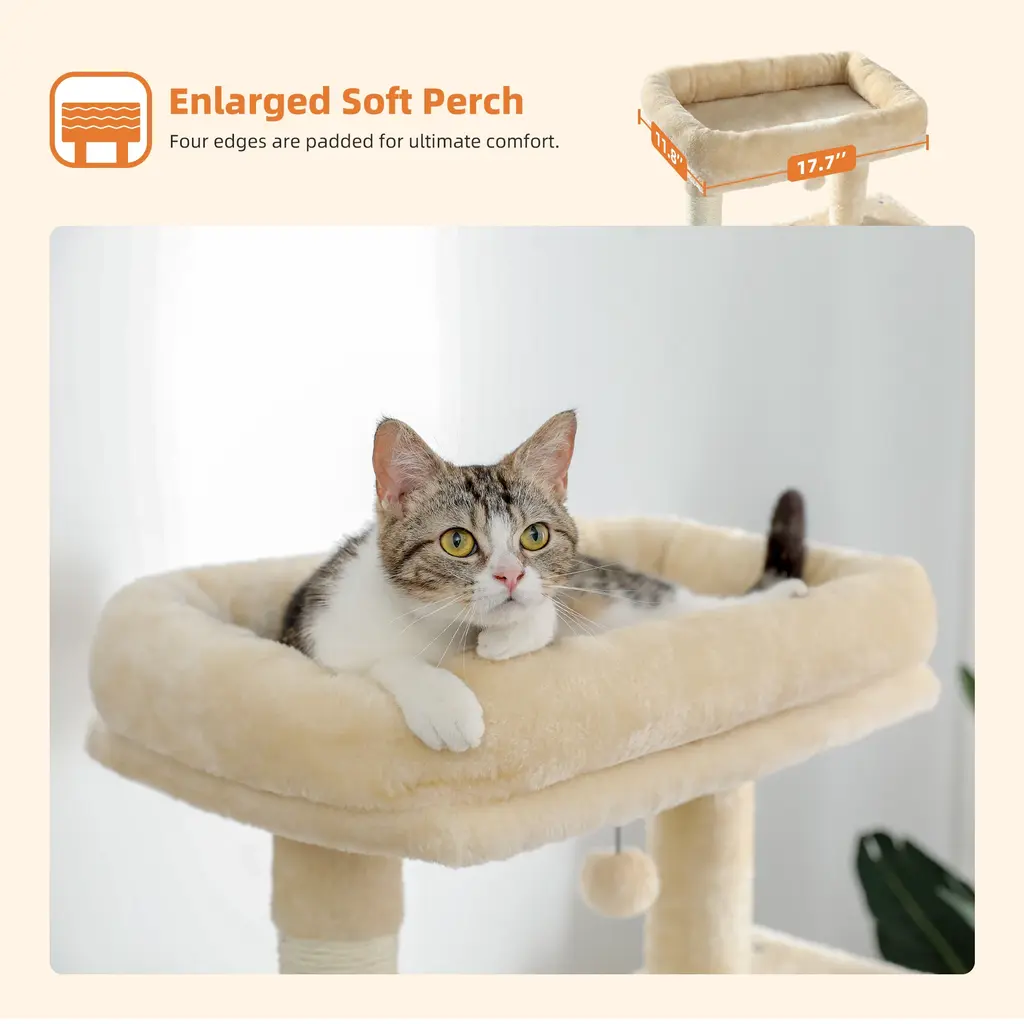 Indoor Multi-Level Tall Cat Tower With Hammock, Scratching Posts, Condo And Top Perch - Beige