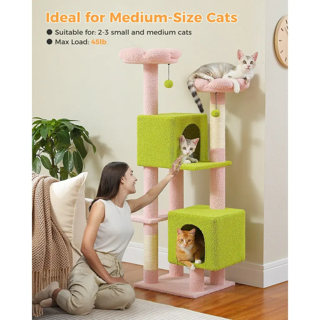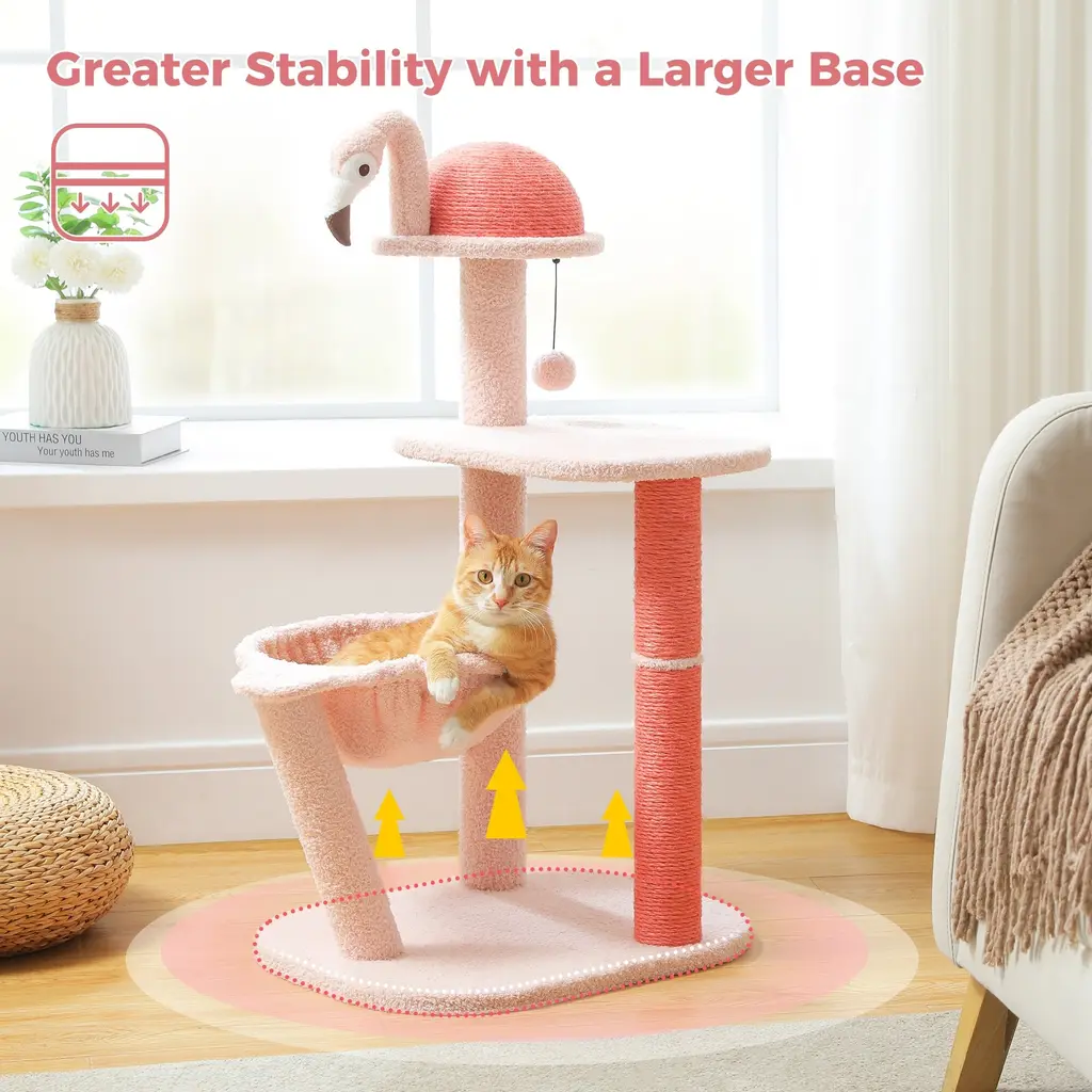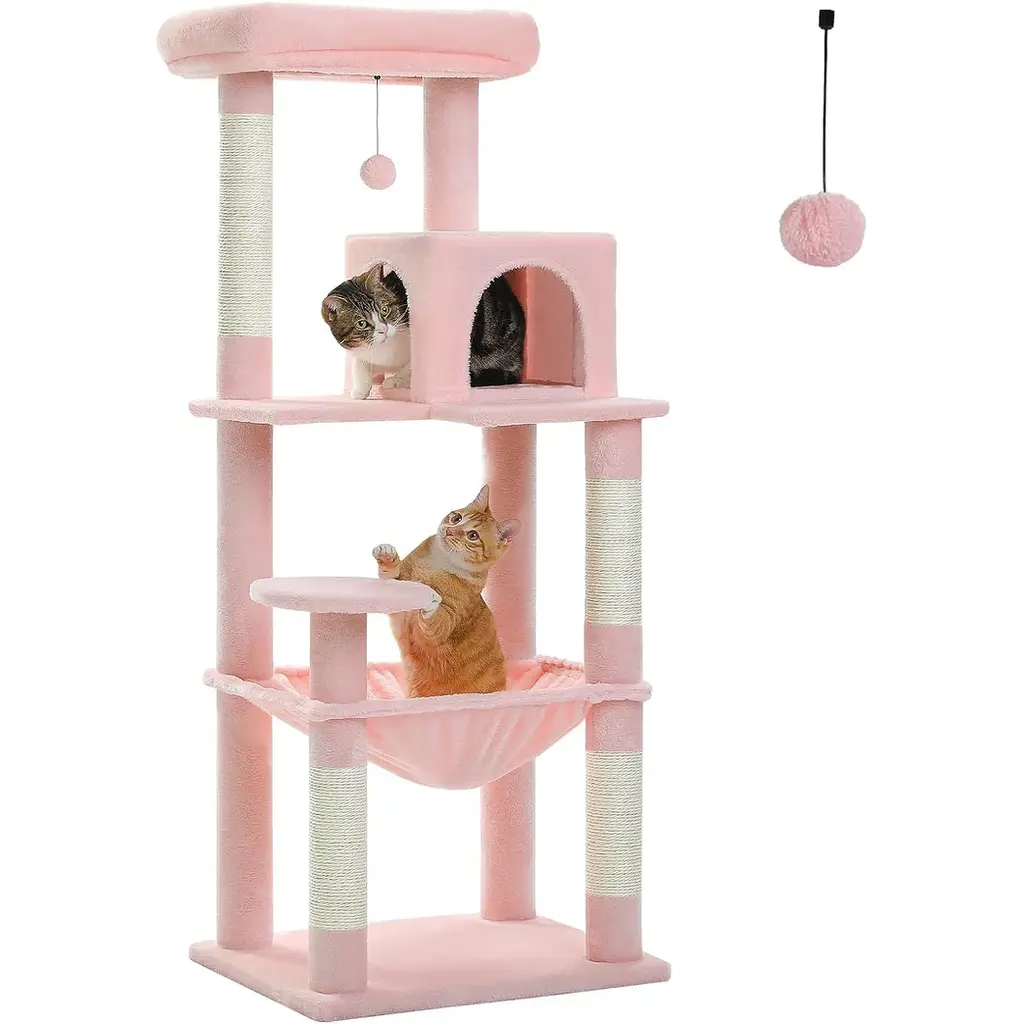 Indoor Multi-Level Tall Cat Tower With Hammock, Scratching Posts, Condo And Top Perch - Light Pink