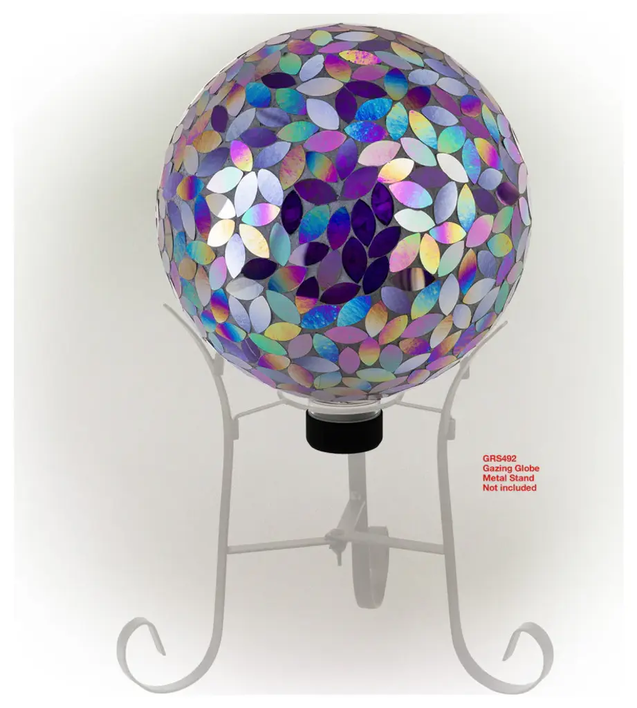 Add beautiful, bright color to your yard with Alpine"™s Indoor/Outdoor Glass Mosaic Gazing Globe Yard Decoration. Made from different colored pieces of glass, this spherical yard art décor provides a unique and decorative addition to your home''s interior or exterior décor with its colorful and mosaic design. The multi-use glass gazing ball can be used in a variety of ways, including in your garden, patio, courtyard, or front door entryway or as an accent piece in your living room. Add one or multiple glass orbs to enhance your formal or informal garden''s natural beauty with their electrifying colors and iridescent shine. Use a metal stand (sold separately) in varying heights to help create visual interest and depth to your soon-to-be award-winning lawn. This colored glass gazing ball will add vibrant color and shine to your garden, and will help promote a healthy garden by reflecting light on sunny days. This colorful glass gazing sphere measures 10"L x 10"W x 12"H to fit almost any outdoor area and includes a one year manufacturer''s warranty from date of purchase. Alpine Corporation is one of America''s leading designers, importers, and distributors of superior quality home and garden decor products. Alpine''s award winning in-house design team continuously develops new and innovative "statement pieces" for your home and garden. Your outdoor living spaces will be the envy of the neighborhood with our wide assortment of fresh, fashionable and contemporary products, from beautifully crafted solar garden stakes featuring patented motion and fiber optic lighting technology to gorgeous glass and glow-in-the-dark birdbaths and feeders.