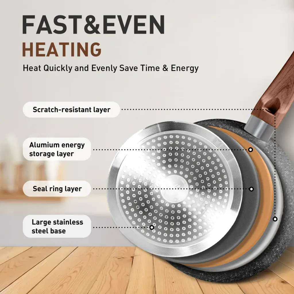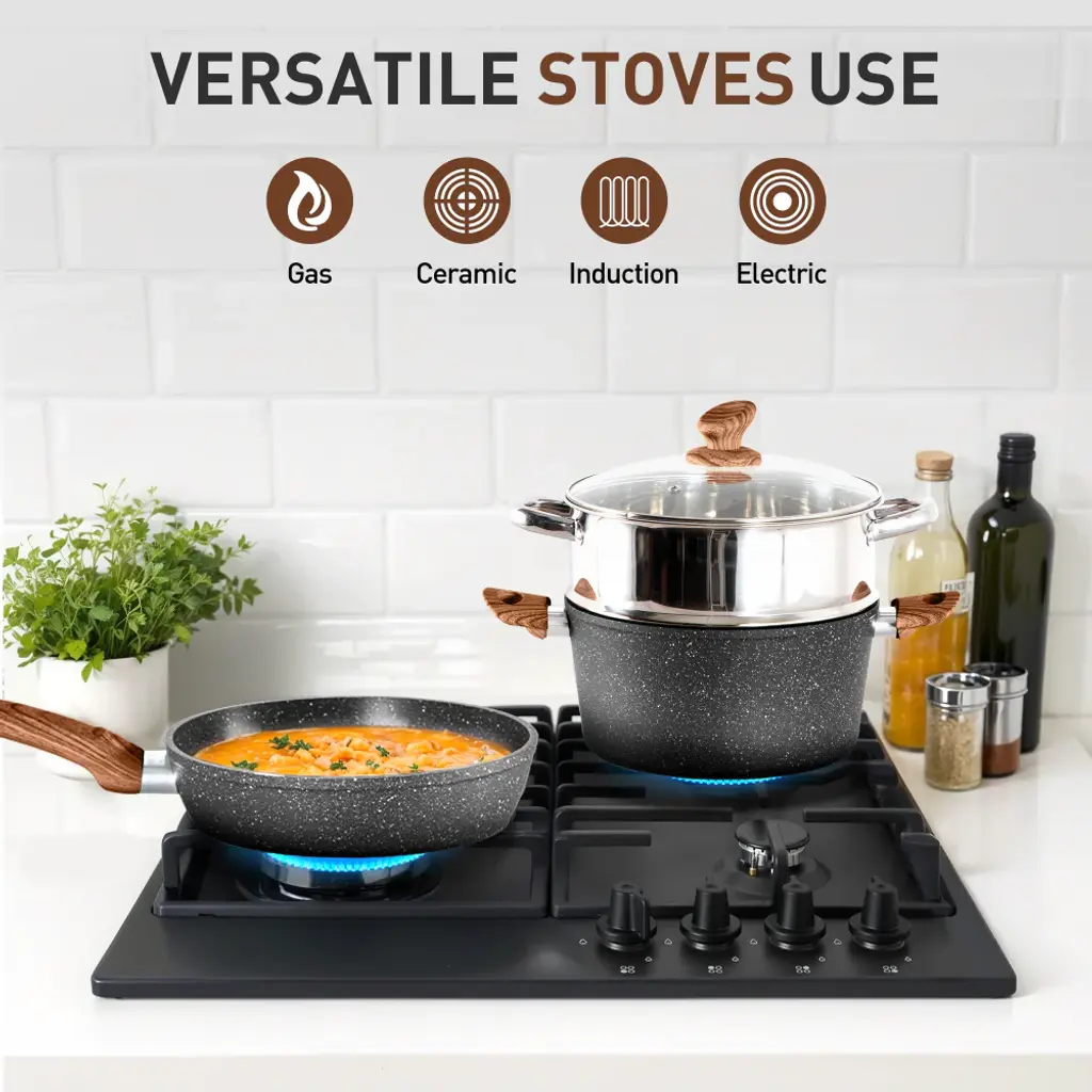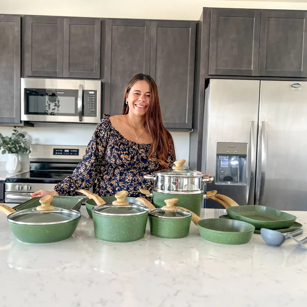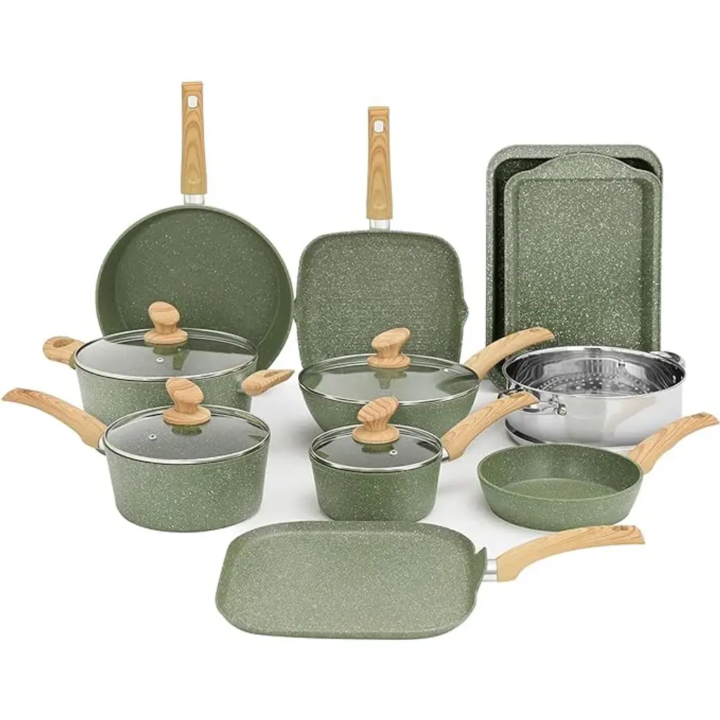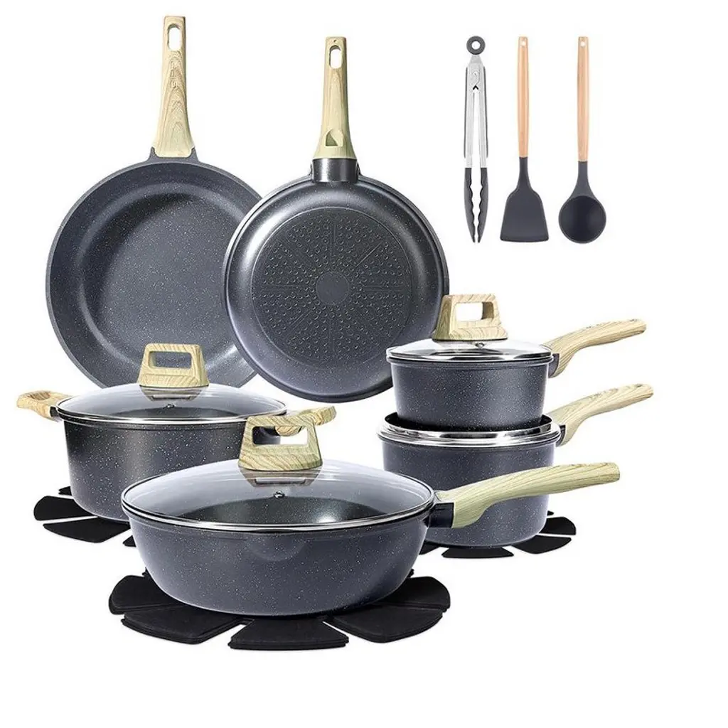 Induction Nonstick Granite-Coating 17 Piece Cookware Set,kitchen Academy