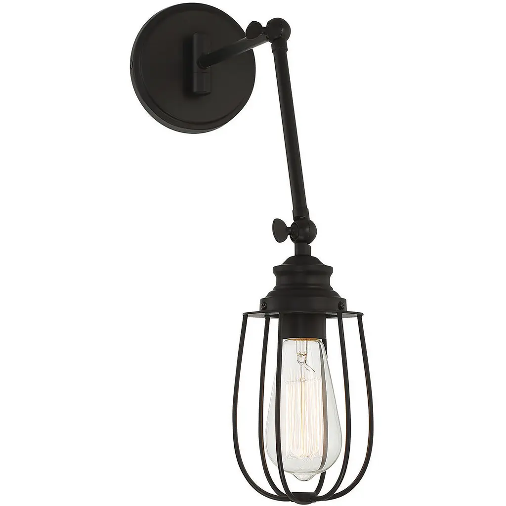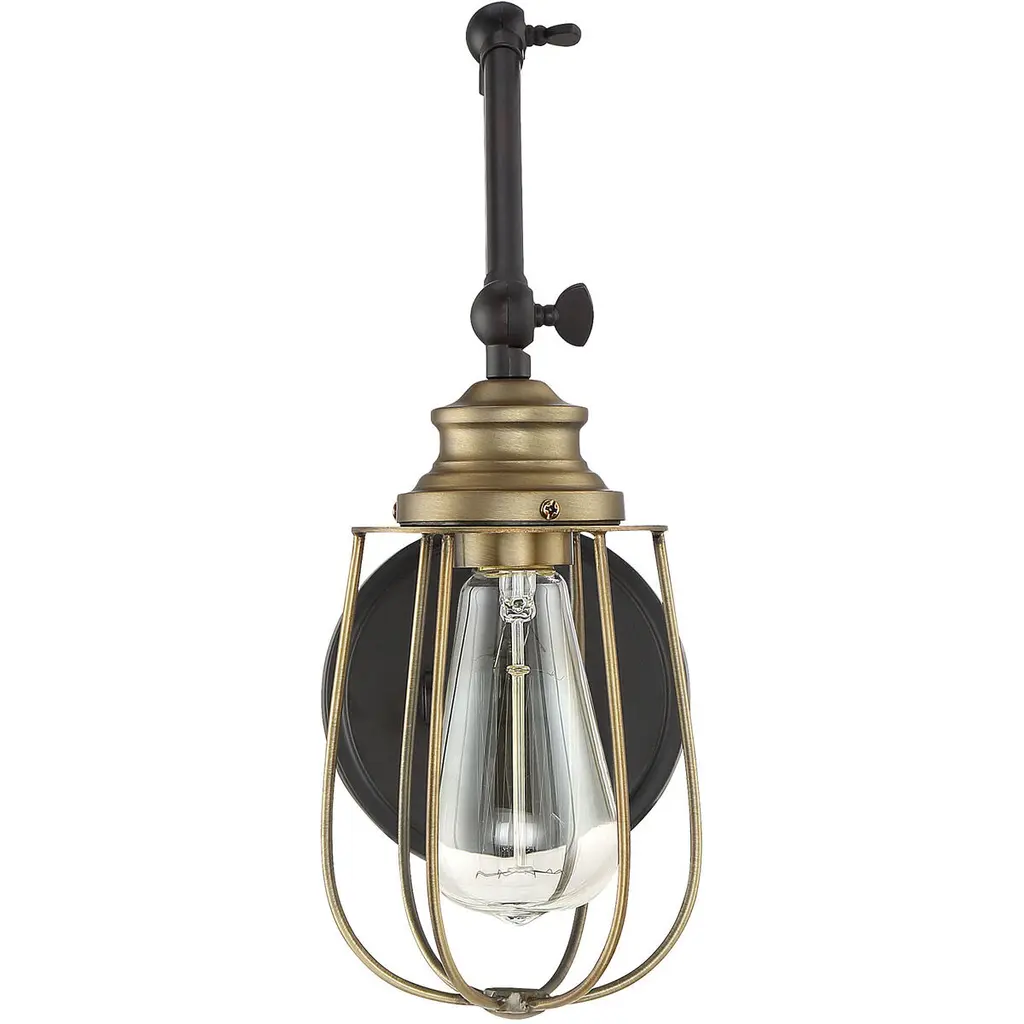 Go industrial with this cool 1-light swing-arm wall sconce, which features a metal cage style shade finished in brass to pair perfectly with the overall Oil Rubbed Bronze finish. 11.38" in height and 5" in width. It can extend up to 17" from the wall.