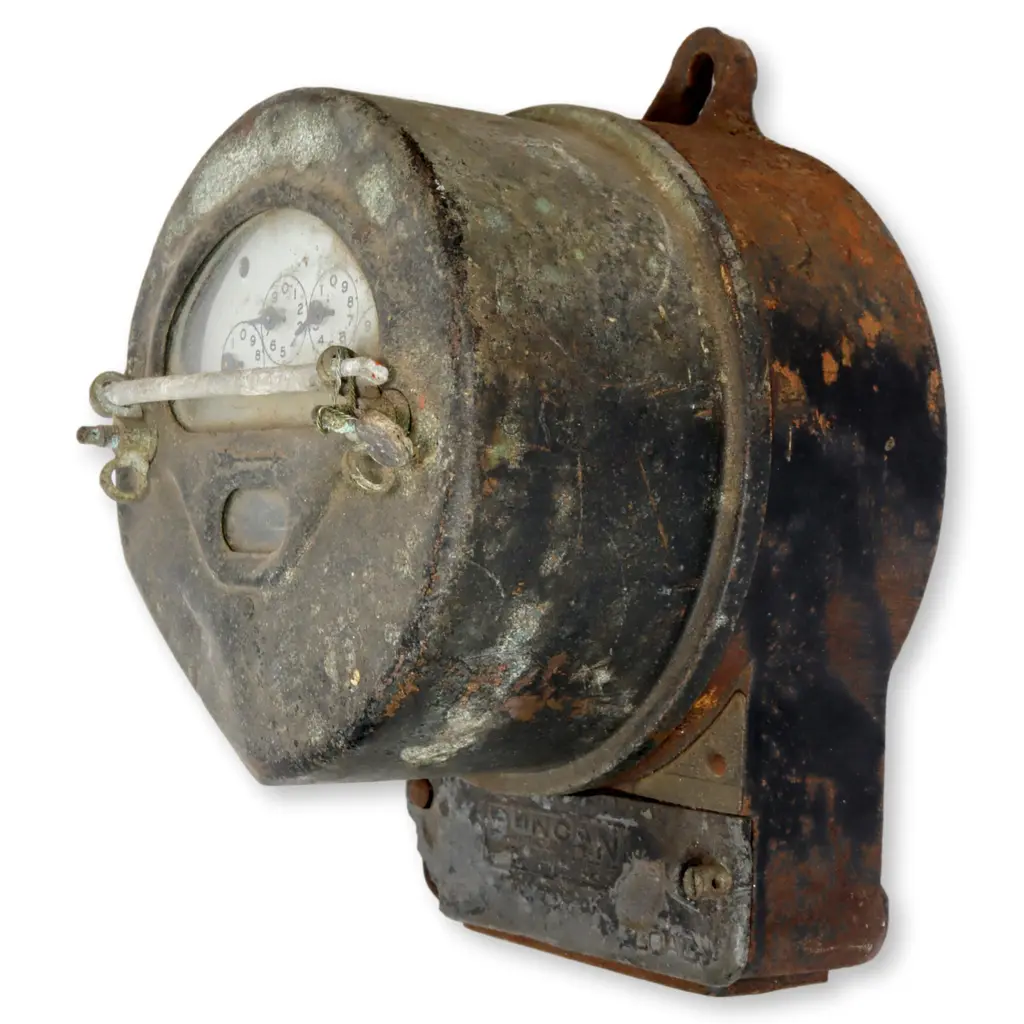 Industrial factory wall meter. It has decades of patina and wear. Hole on top for wall mount.