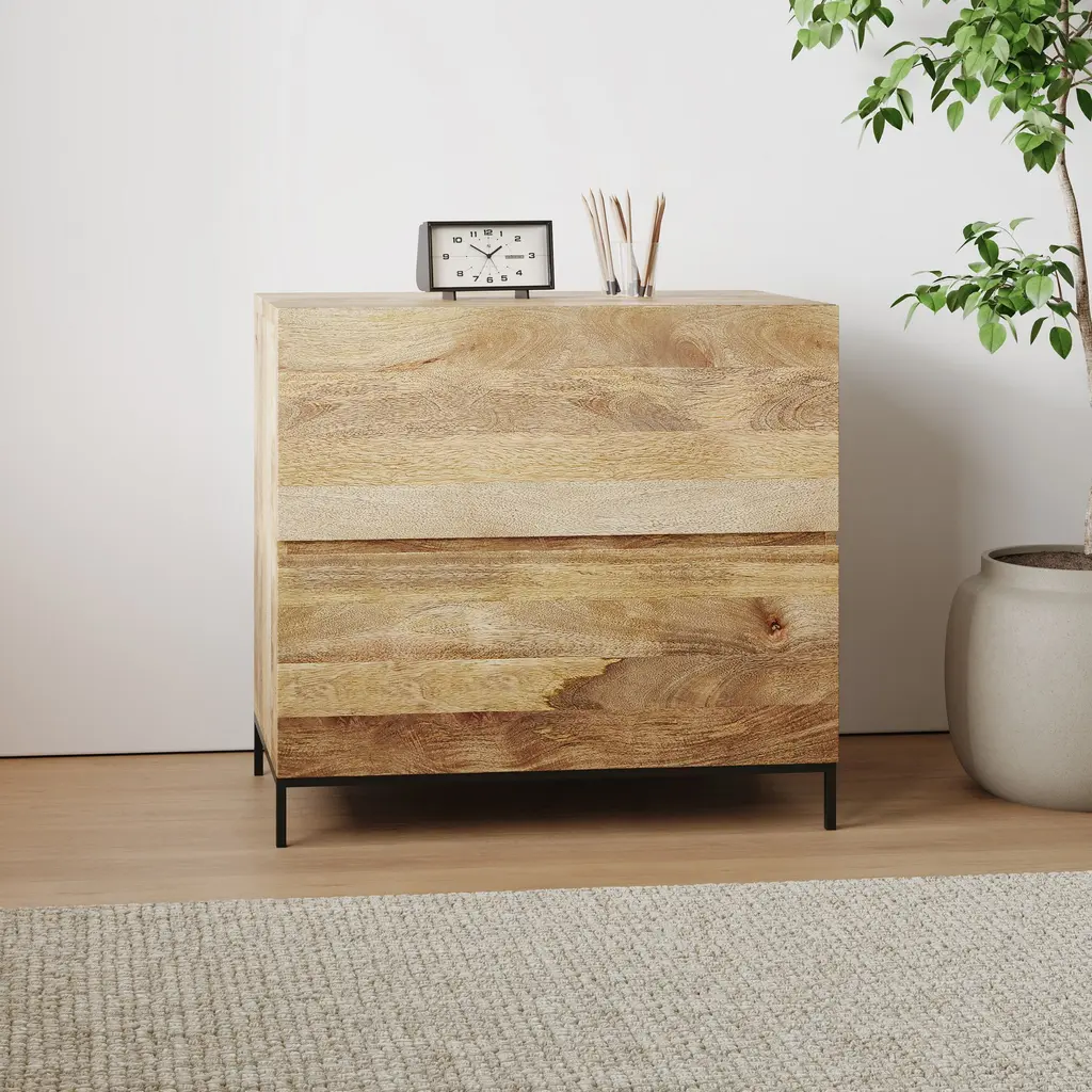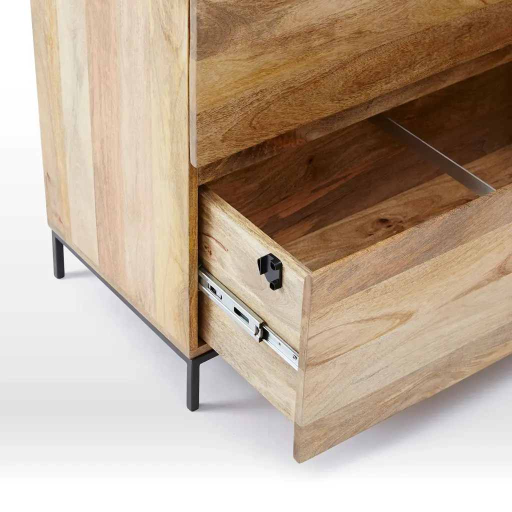 Made from richly grained solid mango wood. Filing drawer for letters and legal files. Easy to pair with other pieces in the collection. Designed to be accessible and wheelchair friendly.