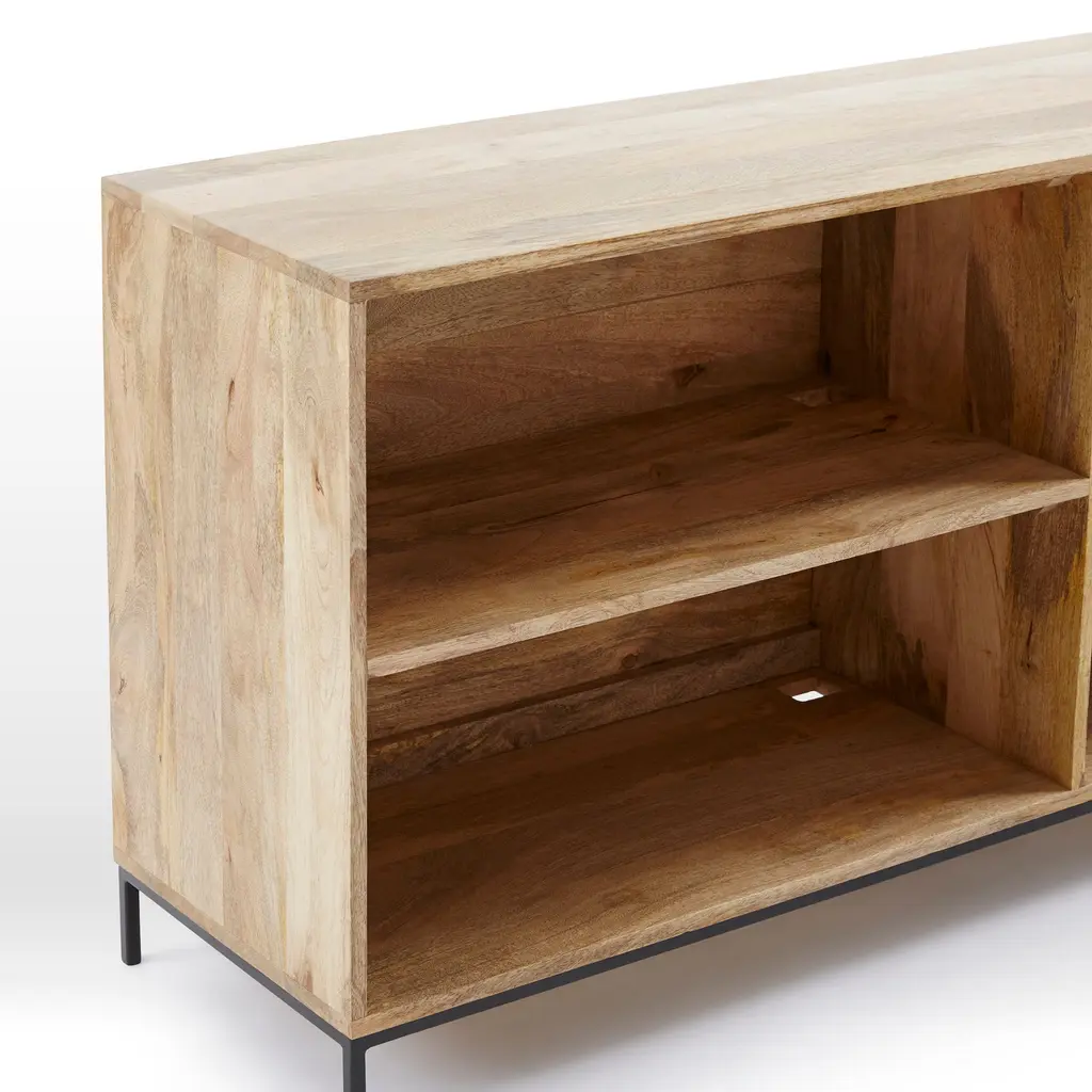 Made from solid, sustainably sourced mango wood. Four wide compartments with fixed shelves. Designed to be accessible and wheelchair friendly. Contract Grade, so you know it's built to last.