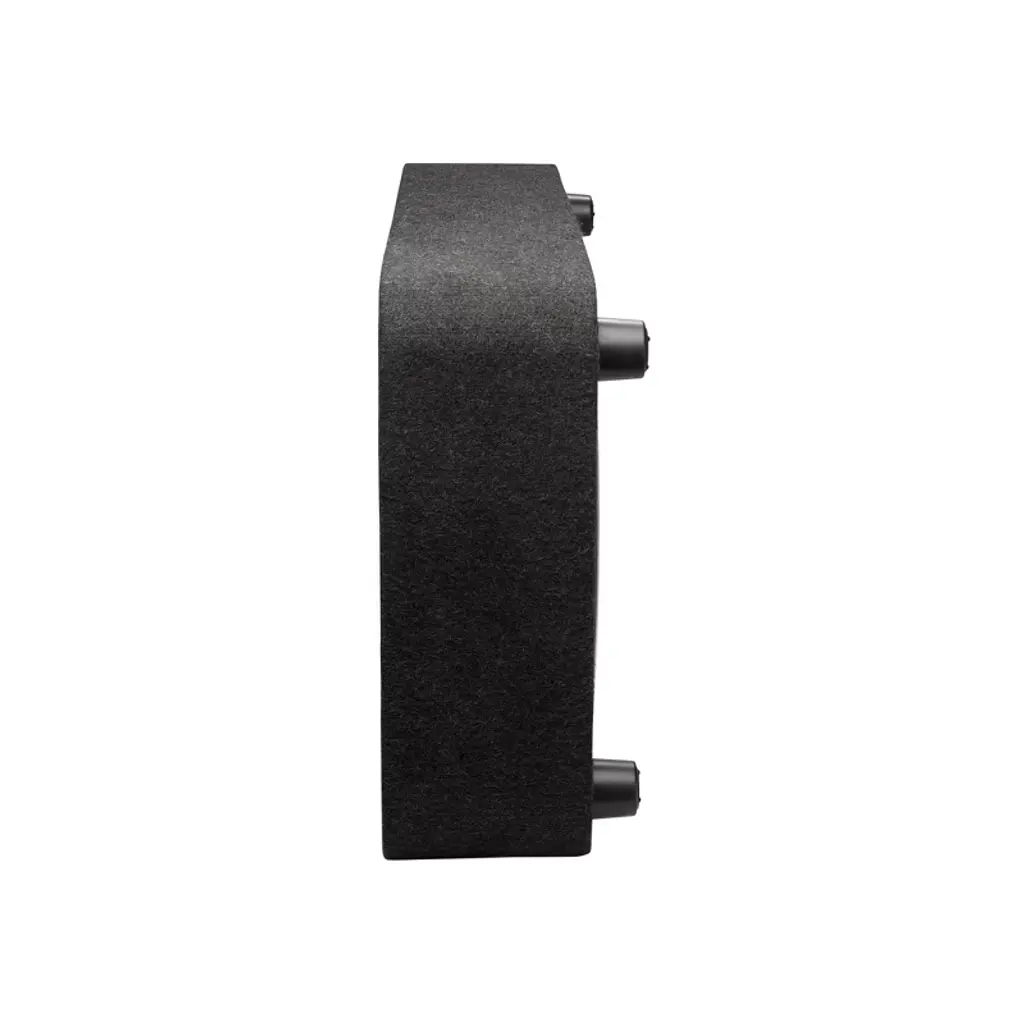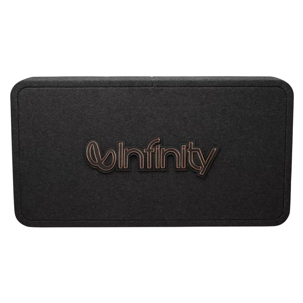 Down-Firing Sealed Enclosure with a Passive Radiator Reference shallow enclosures are engineered with sealed, down-firing type and loaded with a passive radiator subwoofer and new Reference shallow subwoofers. Such a design brings tighter, more accurate bass and takes up little space. Removable Feet Reference shallow enclosures are designed with removable feet which allows for flexible placement direction to get best performance and optimize space per vehicle type. Removable Logo Badge Reference shallow enclosures are designed with a removable logo badge so you can put anywhere you like. Built Tough Reference shallow enclosures are designed with sturdy medium-density fiberboard construction and rugged black carpet covering to resist stacking weight and take a beating. General Specifications Subwoofer: 10" (250mm) Aluminum Driver Power Handling: 350W RMS, 1050W peak Sensitivity (1W/1m): 82.5dB Frequency Response (-6dB): 35Hz – 400Hz Nominal Impedance: 2 ohms Voice Coil Diameter: 2" (50mm) Enclosure dimensions: 334mmD x 630mmW x 115mmH 13-1/8"D x 24-7/8"W x 4-1/2"H Enclosure materials: 3/4” (18mm) MDF with black carpet covering What's in The Box? 1x Subwoofer Enclosure 1x Infinity Logo Badge 4x Plastic Feet 4x Screw Washer 4x Hexalobular Socket Head M6*25 Screws 1x Quick Start Guide 2x Steel Plate + 8x M5*15 Screws