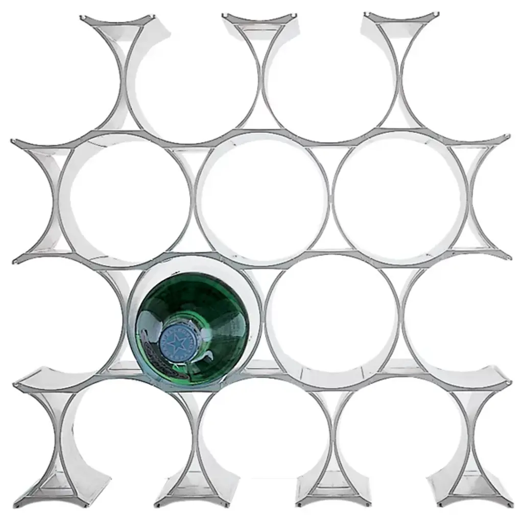 The Kartell Infinity Winerack is a colorful and curvilinear modular bottle-holder. The elements that form the bottle-holder can be fastened together to form an indefinite number of rings inside of which bottles may be stored. The Infinity Winerack features batch-dyed polypropylene material.