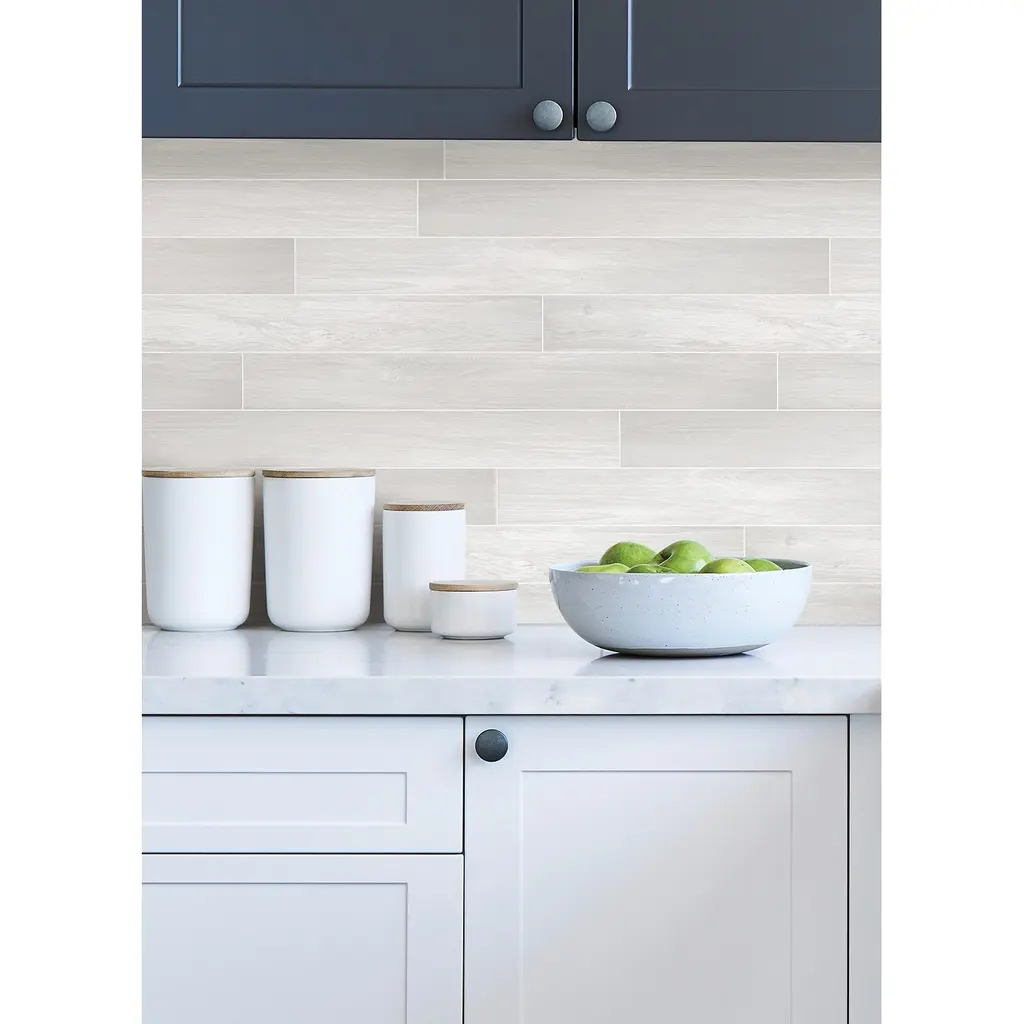 Inhome Ash Porcelain Planks Peel & Stick Rolled Backsplash - White
