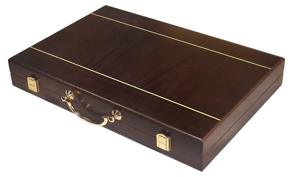 This walnut wood backgammon set is a playful accent. A convenient handle makes it easy to carry.Striking an ideal balance between delicate and detailed, these card sets, games, and accents bring just the right hint of innovation to a tradition of tarnish-resistant taste. Shimmering and sleekly sumptuous, these pieces have a beautiful finish that's as high-quality as it is hard-wearing, making them wonderful gifts.