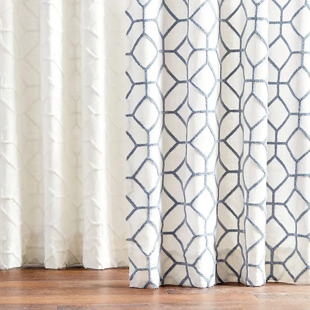 With its textured embroidered trellis design, our Inman Textured Trellis Panel adds subtle geometric structure and dimension. Hand finished in slubby cotton with cotton voile lining for a soft flowing drape.Inman Textured Trellis Panel features:
