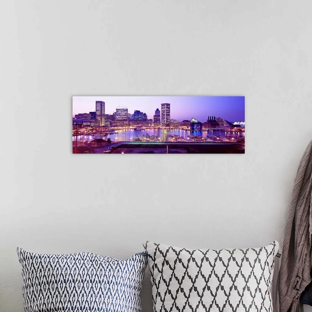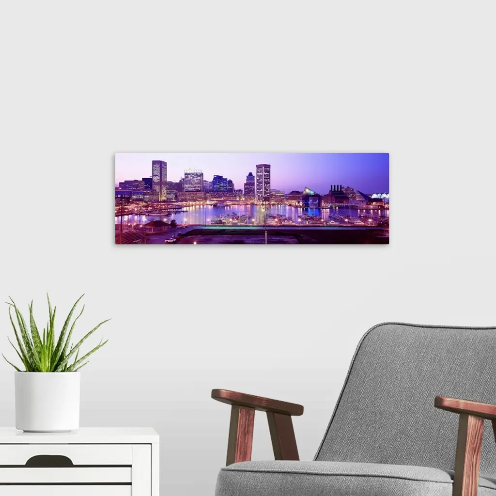 View of the Charm City downtown pavilions, Trade Center, Power Plant, and aquarium from Federal Hill.