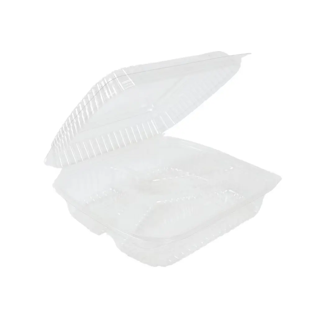 Inno-pak 8" X 8" X 3" Clamshell Container 3-compartment Clear Rpet - Pack Of 80