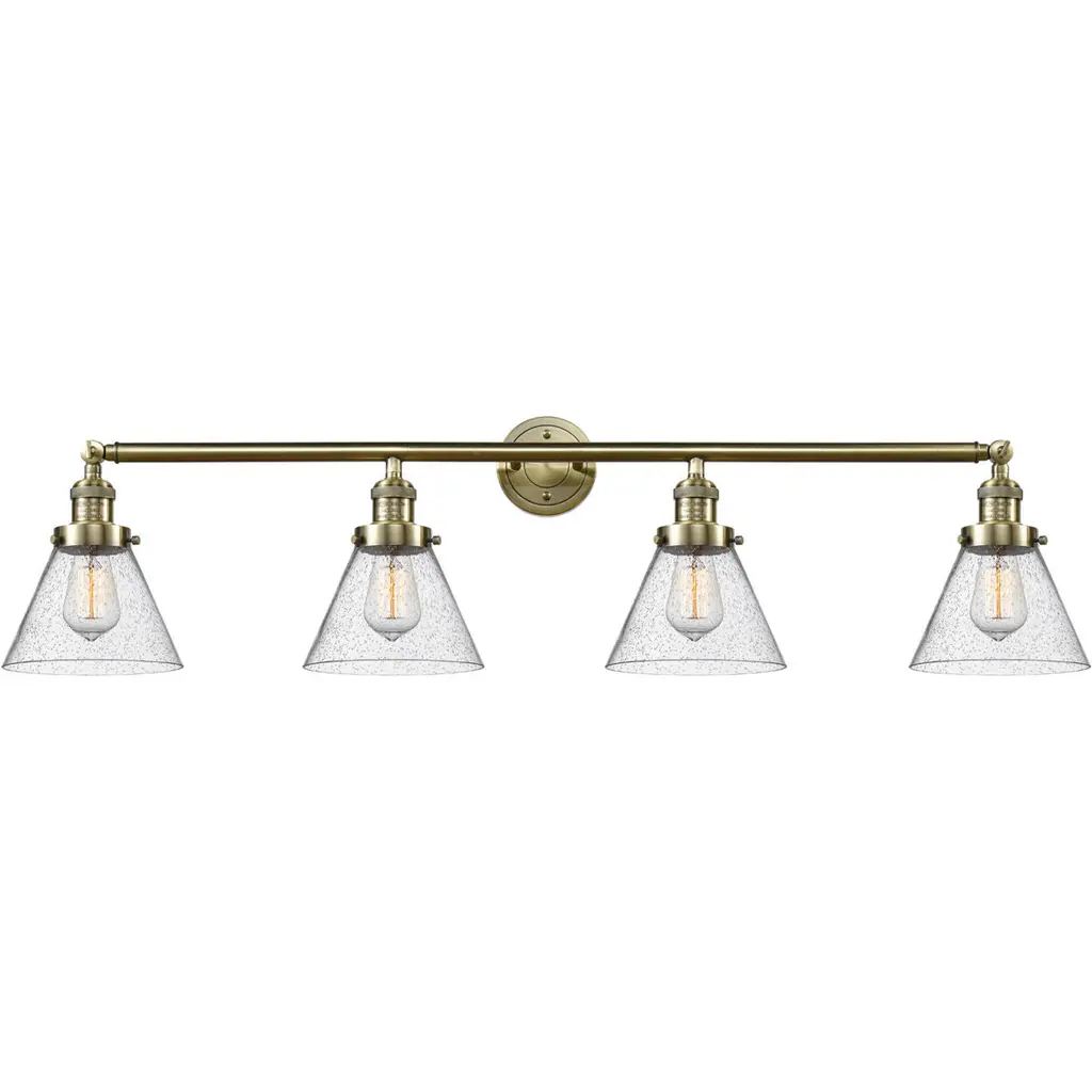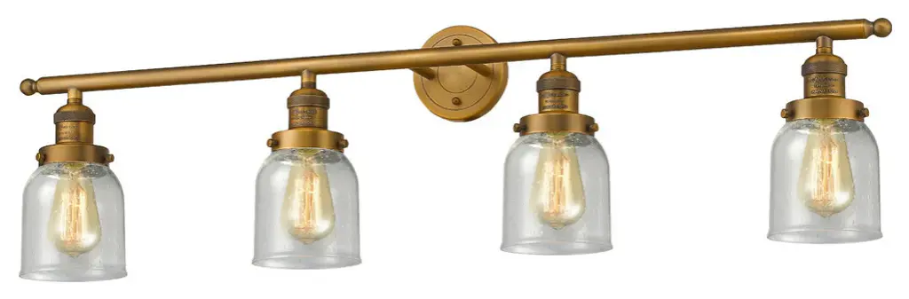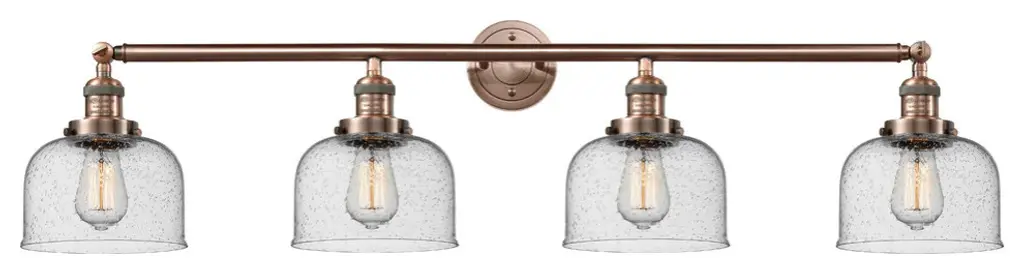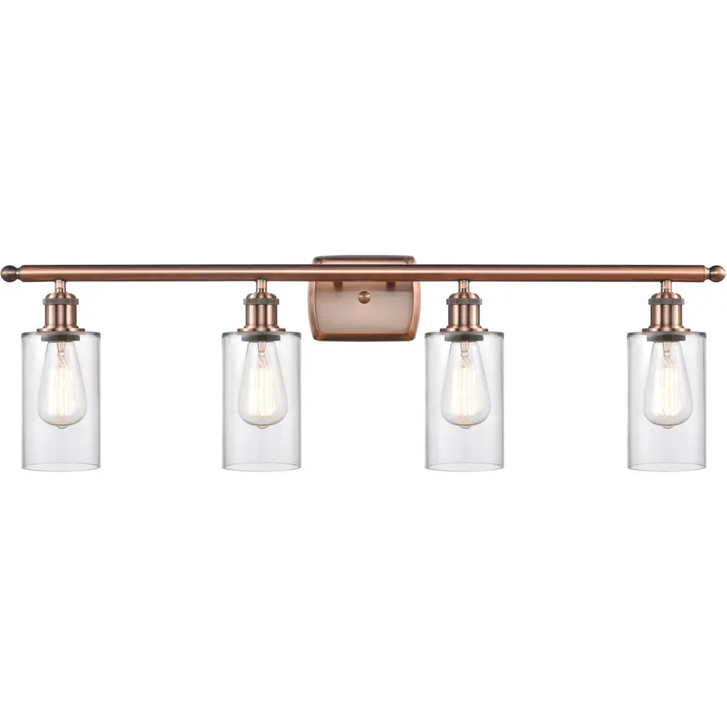 INNOVATIONS LIGHTING 215-AC-G172-LED 4 Light Vintage Dimmable LED Bathroom FixtureFulton 4-Vintage Dimmable LED 42.75 inch Antique Copper Bathroom Fixture with Clear glassCollection: FultonMetal Finish: Antique CopperMaterial: Cast Brass, GlassGlass Color: Antique CopperGlass/Metal Shade Color: ClearGlass/Shade Description: Clear FultonDimension(in): 42.75(W) x 9.25(H) x 7.875(Ext)Glass Shade Dimension(in): 6.75 X 5.25Shade Fitter Size: 3.25 inch FitterCanopy Dimension(in): 4.5(Dia)Backplate Dimension(in): 4.5(Dia) x 0.75(Depth)Bulb: (4)3 Watt LED Vintage Medium Base Bulb IncludedMax Watts Per Socket: 100Color Temperature: 3000 KelvinLumens: 265CRI: 80UL Certification Type: Damp LocationETL Certification Type: Damp LocationReversible(can be hung with bulbs facing up or down): Yes