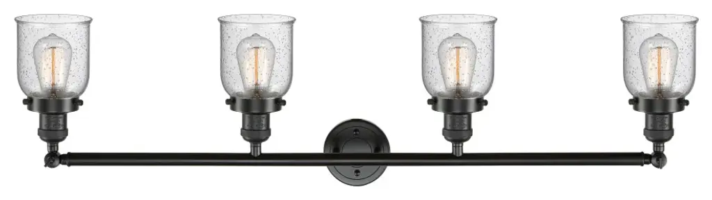 INNOVATIONS LIGHTING 215-OB-G54-LED 4 Light Vintage Dimmable LED Bathroom FixtureSmall Bell 4-Vintage Dimmable LED 42 inch OiDimmable LED Rubbed Bronze Bathroom Fixture with Seedy glassCollection: Small BellMetal Finish: Oiled Rubbed BronzeMaterial: Cast Brass, GlassGlass Color: Oiled Rubbed BronzeGlass/Metal Shade Color: SeedyGlass/Shade Description: Seedy Small BellDimension(in): 42(W) x 9.75(H) x 7(Ext)Glass Shade Dimension(in): 5 X 5.75Shade Fitter Size: 3.25 inch FitterCanopy Dimension(in): 4.5(Dia)Backplate Dimension(in): 4.5(Dia) x 0.75(Depth)Bulb: (4)3 Watt LED Vintage Medium Base Bulb IncludedMax Watts Per Socket: 100Color Temperature: 3000 KelvinLumens: 265CRI: 80UL Certification Type: Damp LocationETL Certification Type: Damp LocationReversible(can be hung with bulbs facing up or down): Yes