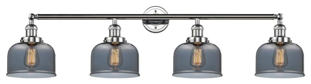 INNOVATIONS LIGHTING 215-PN-G43-LED 4 Light Vintage Dimmable LED Bathroom FixtureLarge Cone 4-Vintage Dimmable LED 43.75 inch Polished Nickel Bathroom Fixture with Smoked glassCollection: Large ConeMetal Finish: Polished NickelMaterial: Cast Brass, GlassGlass Color: Polished NickelGlass/Metal Shade Color: SmokedGlass/Shade Description: Smoked Large ConeDimension(in): 43.75(W) x 10(H) x 8.375(Ext)Glass Shade Dimension(in): 7.75 X 6Shade Fitter Size: 3.25 inch FitterCanopy Dimension(in): 4.5(Dia)Backplate Dimension(in): 4.5(Dia) x 0.75(Depth)Bulb: (4)3 Watt LED Vintage Medium Base Bulb IncludedMax Watts Per Socket: 100Color Temperature: 3000 KelvinLumens: 265CRI: 80UL Certification Type: Damp LocationETL Certification Type: Damp LocationReversible(can be hung with bulbs facing up or down): Yes