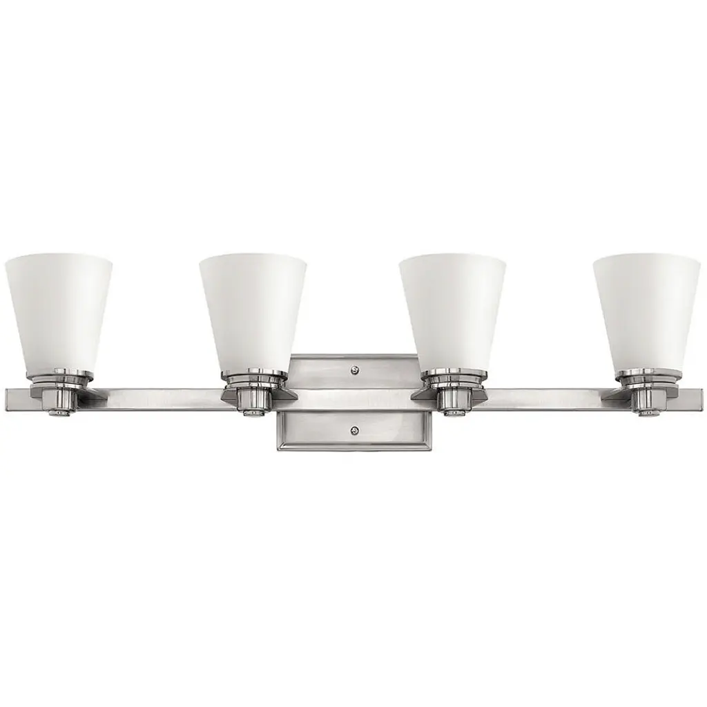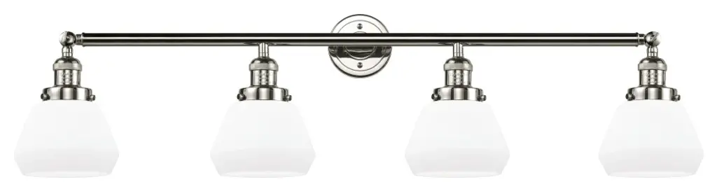 INNOVATIONS LIGHTING 215-PN-G61-LED 4 Light Vintage Dimmable LED Bathroom FixtureSmall Cone 4-Vintage Dimmable LED 42.25 inch Polished Nickel Bathroom Fixture with Matte White Cased glassCollection: Small ConeMetal Finish: Polished NickelMaterial: Cast Brass, GlassGlass Color: Polished NickelGlass/Metal Shade Color: Matte White CasedGlass/Shade Description: Matte White Cased Small ConeDimension(in): 42.25(W) x 9.75(H) x 7.625(Ext)Glass Shade Dimension(in): 6.25 X 5.75Shade Fitter Size: 3.25 inch FitterCanopy Dimension(in): 4.5(Dia)Backplate Dimension(in): 4.5(Dia) x 0.75(Depth)Bulb: (4)3 Watt LED Vintage Medium Base Bulb IncludedMax Watts Per Socket: 100Color Temperature: 3000 KelvinLumens: 265CRI: 80UL Certification Type: Damp LocationETL Certification Type: Damp LocationReversible(can be hung with bulbs facing up or down): Yes