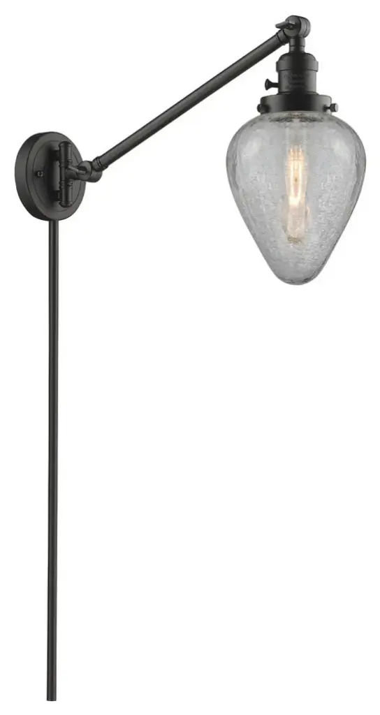 INNOVATIONS LIGHTING 237-OB-G51-LED Small Bell 1 Light Swing Arm. The Small Bell 1 Light Swing Arm is part of the Franklin Restoration Collection.3 Way (High-Low-Off) Switch Included on Socket. Family Name: Small Bell. Collection Name: Franklin Restoration. Metal Finish(Body): Oil Rubbed Bronze. Metal Finish (Canopy/Backplate): Oil Rubbed Bronze. Material: Steel, Cast Brass, Glass. Dimension(in): 25(H) x 8(W) x 21(Ext). Glass Shade Description: Matte White Cased Small Bell. Glass Type: Frosted. Glass or Metal Shade Shape: Bell. Glass or Metal Shade Color: Matte White. Shade Material: Glass. Shade Size(Diameter x Height): 5 X 5.75. Shade Dimension(in): 5(Dia) x 5.75(H). Canopy Dimensions(in): 4.5. Backplate Dimensions(in): 4.5x0.75. Cord: Molded plug with 7 Feet Of Wire. Stem Specs: 2-12 inch solid tube cord covers. Bulb: (1)3.5W Medium Base LED(Included), Dimmable. Color Temperature: 2700. Lumens: 350. Color Rendering Index(CRI): 82. Life Expectancy(Hours): 15000. Switch Type : High-Low-Off. Voltage : 120. Warranty: 2 Year Finish, Lifetime Electrical. 3 Way (High-Low-Off) Switch Included on Socket. Fixture can be hung with bulbs facing up or down as a Wall Mount or Facing Down as a Ceiling Mount. Rated for 100 Watt Maximum. UL/CUL Damp Rated. In order to maintain the finish we recommend simply using water and a cheesecloth towel. Compatible with Incandescent, LED, Fluoresent and Halogen bulbs.