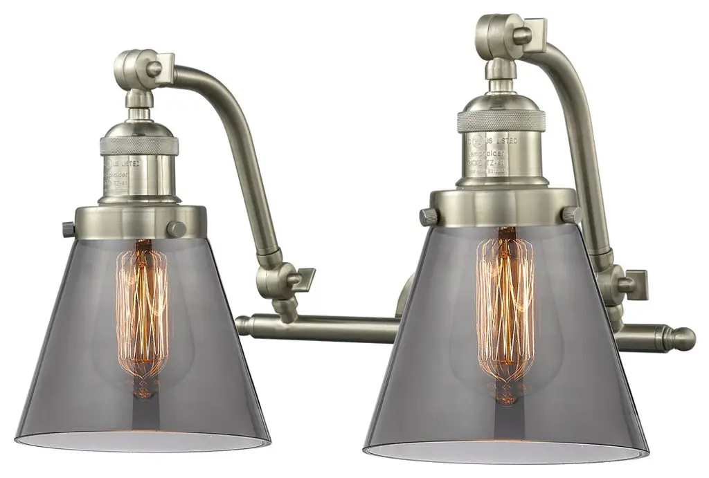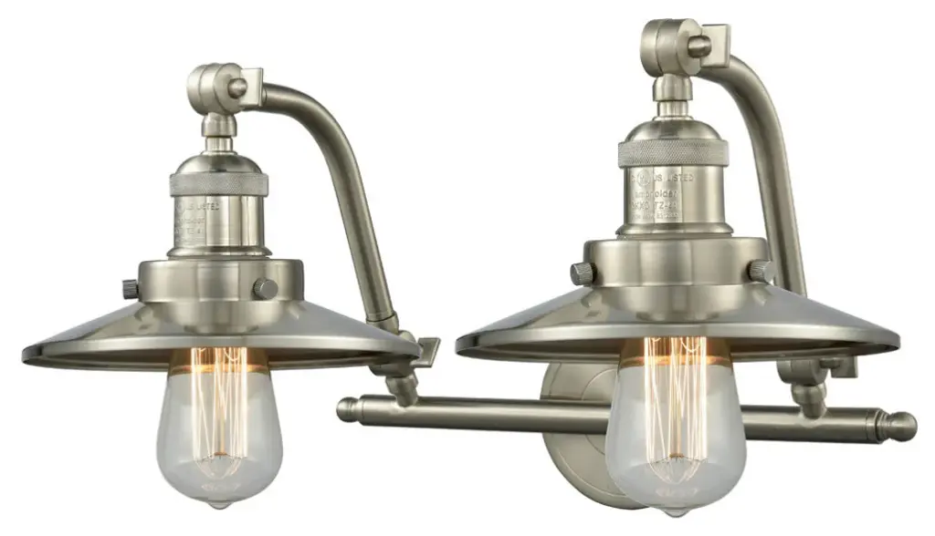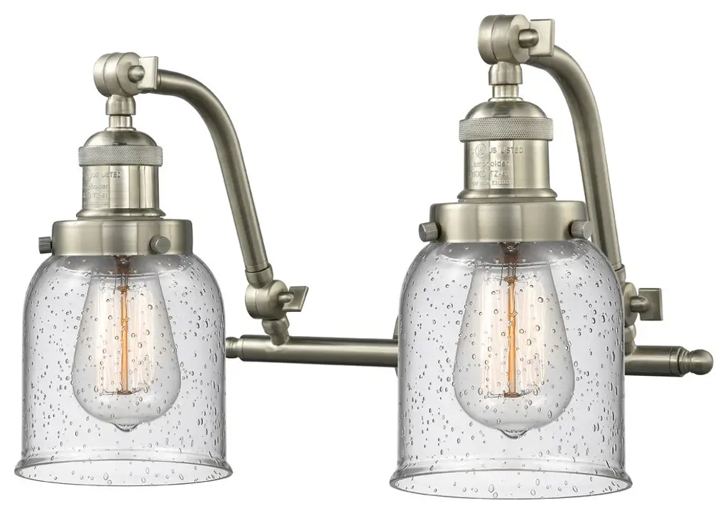 INNOVATIONS LIGHTING 515-2W-SN-G192-LED Bellmont 2 Light Bath Vanity Light part of the Franklin Restoration Collection. The Bellmont 2 Light Bath Vanity Light is part of the Franklin Restoration Collection.Solid Brass 180 Degree Adjustable Swivels with internal teeth that lock in at 5 degree intervals. Collection: Franklin Restoration. Material: Steel, Cast Brass, Glass. Metal Finish(Body): Brushed Satin Nickel. Metal Finish(Canopy/Backplate): Brushed Satin Nickel. Dimension(in): 18(W) x 12(H) x 10(Ext). Bulb: (2)3.5 Watt LED Vintage Medium Base Bulb Included,Dimmable. Color Temperature: 2700. Color Rendering Index(CRI): 82. Lumens): 350. Voltage: 120. Glass: Clear Bellmont/Transparent. Shade Shape: Bell. Shade Material: Glass. Shade Size(in): 6 X 6.25. Shade Fitter Measurement: 3.25 inch Fitter. Canopy Dimension(in): 4.5. Backplate Dimension(in): 4.5x0.75. Solid Brass 180 Degree Adjustable Swivels with internal teeth that lock in at 5 degree intervals. Fixture can be hung with bulbs facing up or down. UL/CUL Damp Rated. Warranty: 2 Year Finish, Lifetime Electrical.