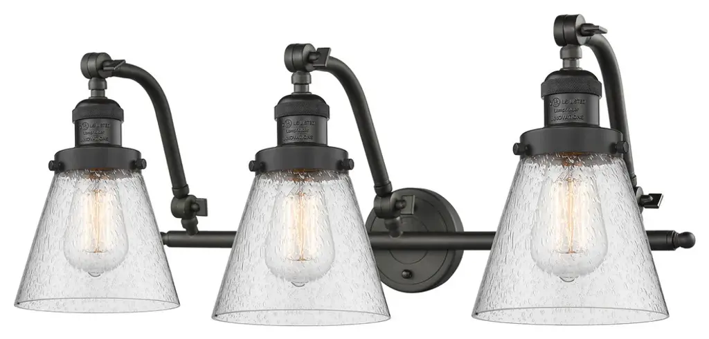 INNOVATIONS LIGHTING 515-3W-OB-G51-LED Small Bell 3 Light Bath Vanity Light part of the Franklin Restoration Collection. The Small Bell 3 Light Bath Vanity Light is part of the Franklin Restoration Collection.Solid Brass 180 Degree Adjustable Swivels with internal teeth that lock in at 5 degree intervals. Collection: Franklin Restoration. Material: Steel, Cast Brass, Glass. Metal Finish(Body): Oil Rubbed Bronze. Metal Finish(Canopy/Backplate): Oil Rubbed Bronze. Dimension(in): 28(W) x 12(H) x 10(Ext). Bulb: (3)3.5 Watt LED Vintage Medium Base Bulb Included,Dimmable. Color Temperature: 2700. Color Rendering Index(CRI): 82. Lumens): 350. Voltage: 120. Glass: Matte White Cased Small Bell/Frosted. Shade Shape: Bell. Shade Material: Glass. Shade Size(in): 5 X 5.75. Shade Fitter Measurement: 3.25 inch Fitter. Canopy Dimension(in): 4.5. Backplate Dimension(in): 4.5x0.75. Solid Brass 180 Degree Adjustable Swivels with internal teeth that lock in at 5 degree intervals. Fixture can be hung with bulbs facing up or down. UL/CUL Damp Rated. Warranty: 2 Year Finish, Lifetime Electrical.