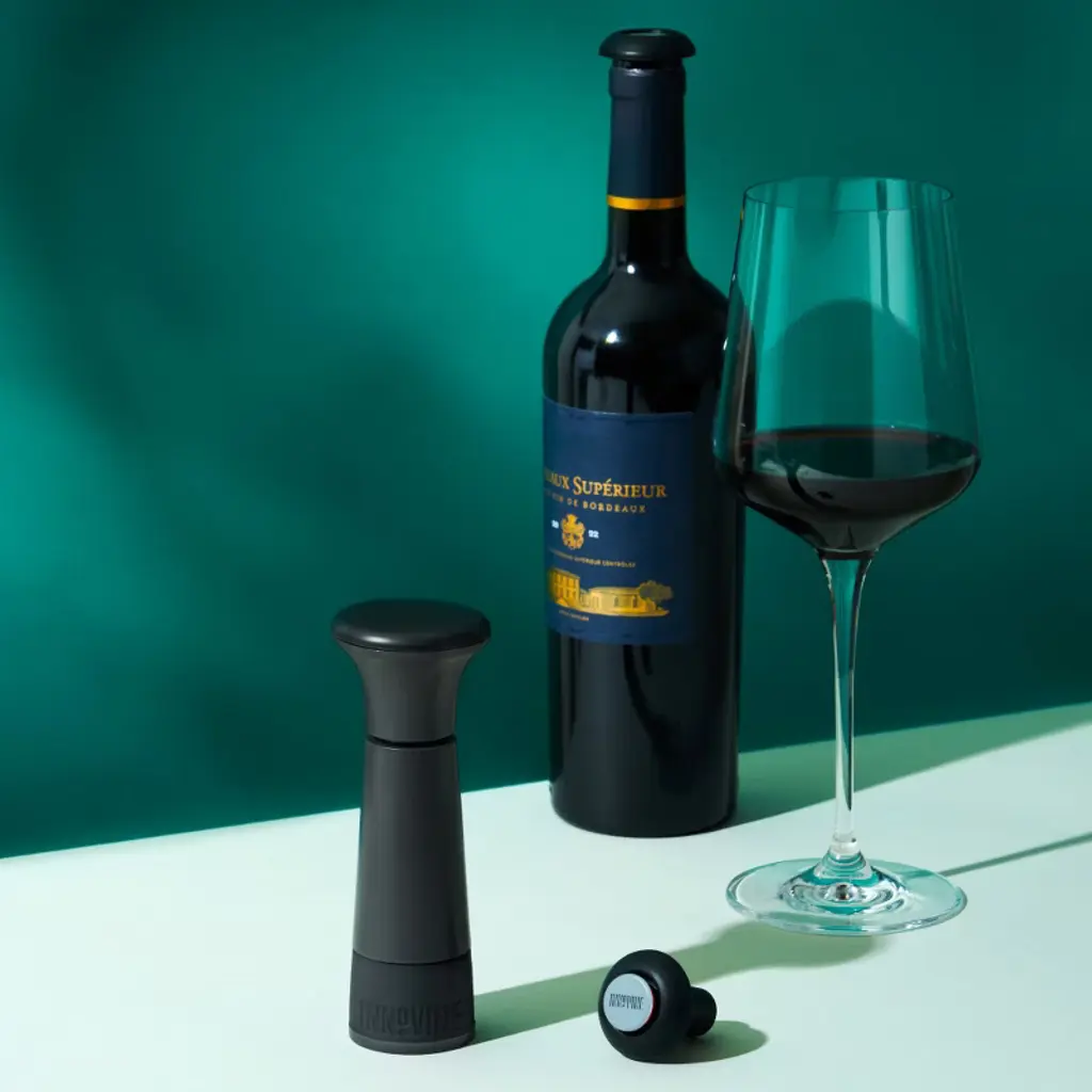 Innovine Vacuum Wine Saver, Includes Pump And 2 Reusable Stoppers, Durable Easy To Use Preserver For Wines, Home Bars, 3-piece Set, Graphite
