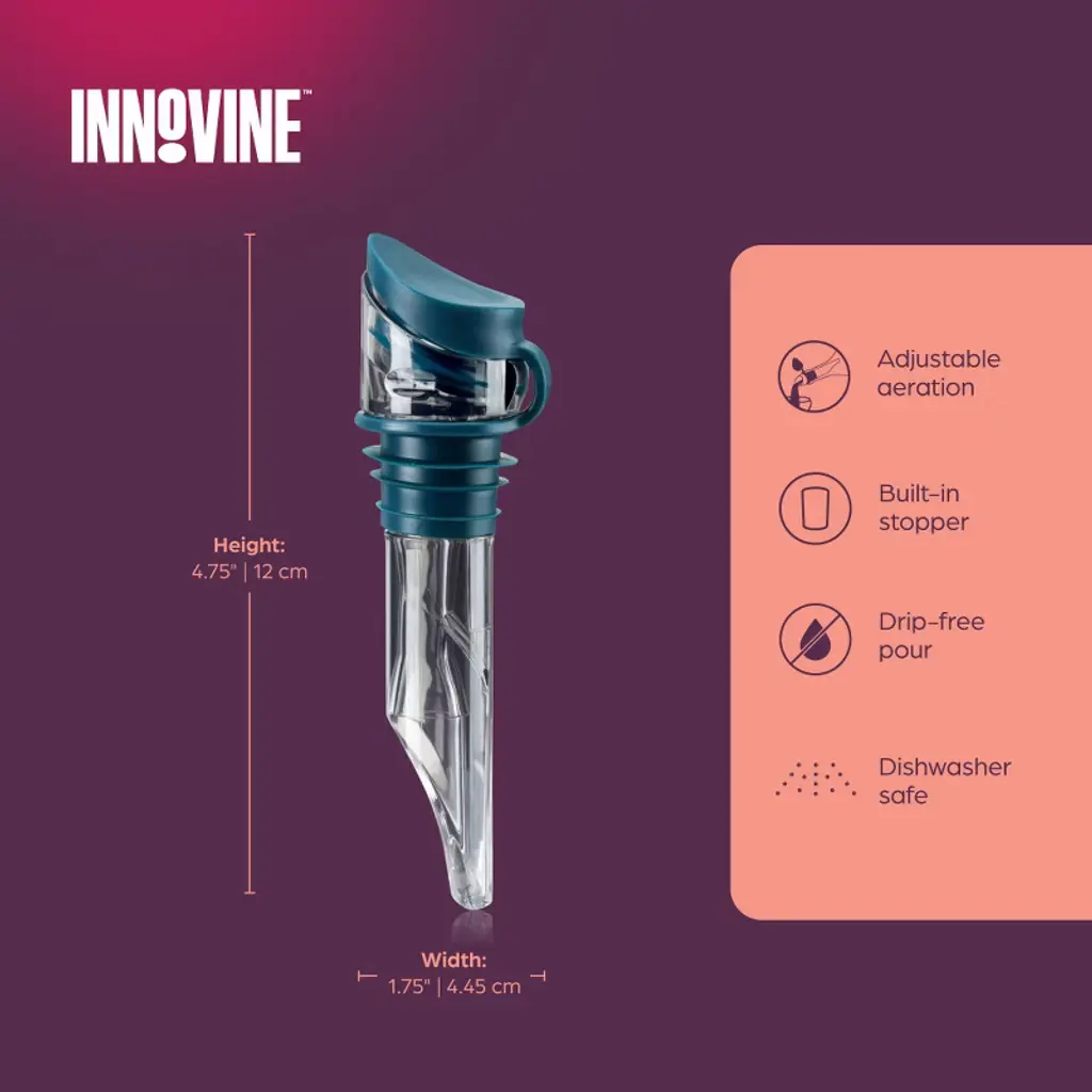Innovine Wine Aerator Pourer With Built In Stopper, Tilt Design, Easy Pour, No Drip, Perfect For Red & White Wines, Set Of 1, Dark Teal