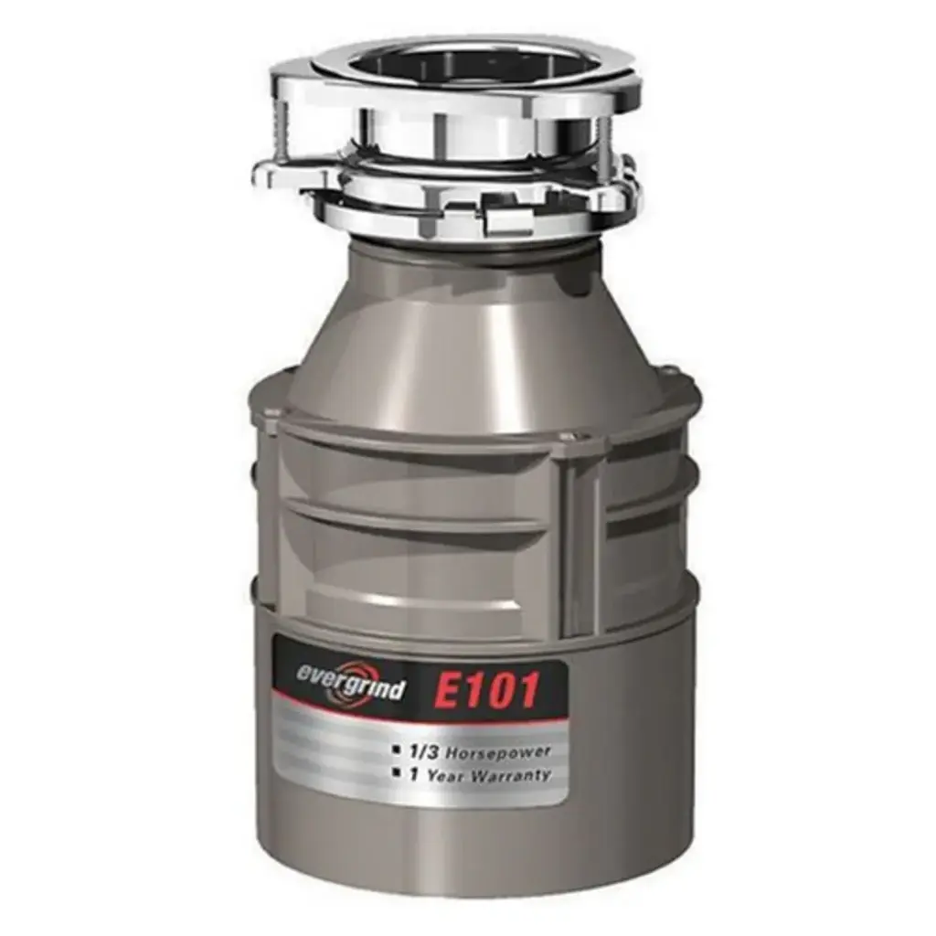 Evergrind food waste disposers offer a fast and efficient way to get rid of kitchen waste, saving you time. And the outstanding value of these units saves you money. They don't dominate a kitchen like a massive refrigerator. They don't feature elaborate control panels like a microwave oven. But food waste disposers take their rightful place of honor in kitchens around the world. Day after day, perhaps more often than any other appliance, they bring convenience and practicality to everyone in the home. Each of these quality kitchen appliances is backed by a full, in-home service warranty. There's a place for kitchen garbage, and it's not underneath your sink or beside your countertop. In fact, no matter where you keep a garbage can, getting rid of food waste can be a messy, smelly chore. Bagged garbage can also attract animals and insects, and create unsanitary conditions around your home. With an Evergrind disposal in your kitchen, more can go right down the drain and into the garbage disposal -- where they're virtually liquefied to safely flow into your sewage system. You'll enjoy a cleaner food preparation area, less cans and bags cluttering your home, and fewer trips carrying garbage to the curb. Because of our commitment to quality, service, performance and reliability. And something more. Our products are the easiest to install, provide greater peace of mind, and offer exclusive We Come To You In-Home Service Warranties.Features:Exclusive self-service wrench1 year parts and in-home service warrantyQuick Lock mounting for fast, easy installationGalvanized steel grinding elements with two stainless steel 360-deg swivel lugsStainless steel sink flange with positive seal plastic stopperOverload protector manual resetPermanently lubricated upper and lower bearingsCushioned anti-splash baffleDishwasher drain connection1 year parts and in-home service warrantyDimensions: 6.31 in. long x 6.31 in. wide x 11.5 in. highSpecifications: 1/2 Horsepower MotorType of Feed: ContinuousOn/Off Control: Wall SwitchMotor: Single PhaseLubrication: Permanently Lubricated Upper & Lower BearingsGrind Chamber Capacity: 26 ozMotor Protection: Manual Reset OverloadAverage Water Usage Approx. 1 Gallon Per Person Per DayDrain Connection: 1-1/2? Anti-Vibration (Hose Clamp)YesAssembly Required