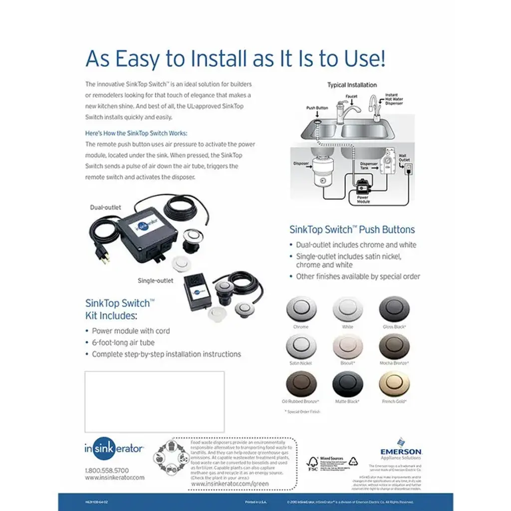 Insinkerator Sink Top Mounted Air Switch For Garbage Disposals - Brushed Bronze