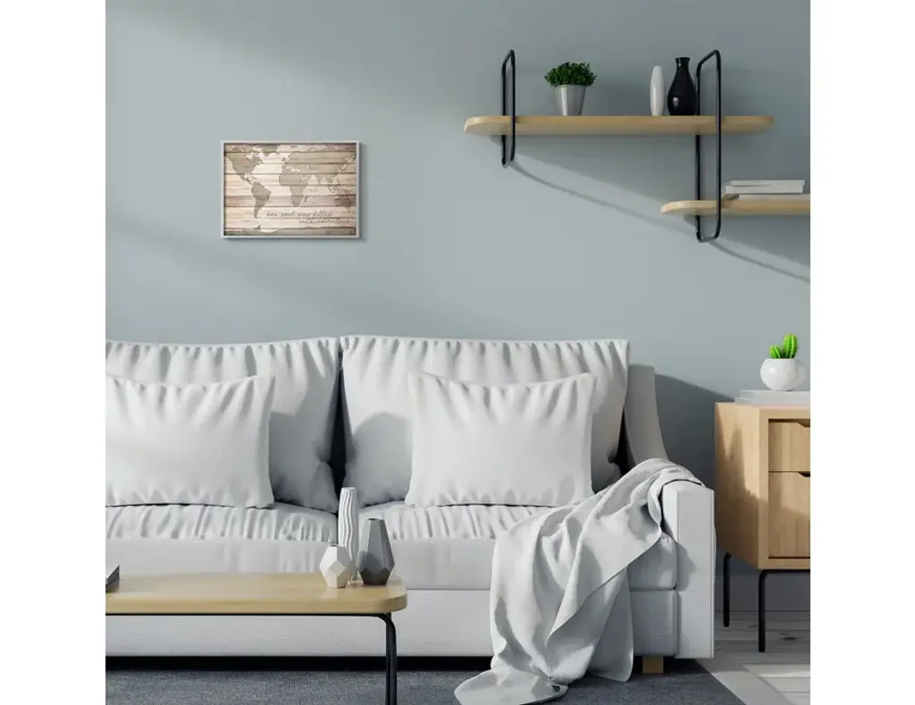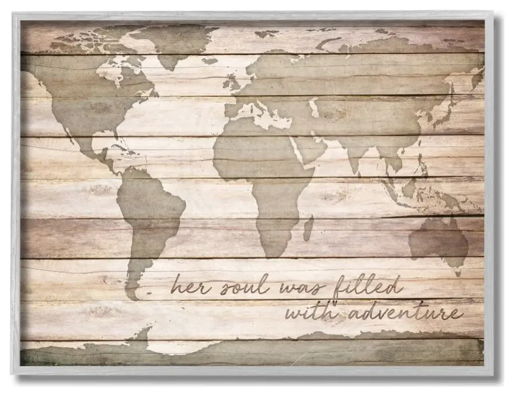 Inspirational Word World Map Wood Te"xture Design, 11"x14"